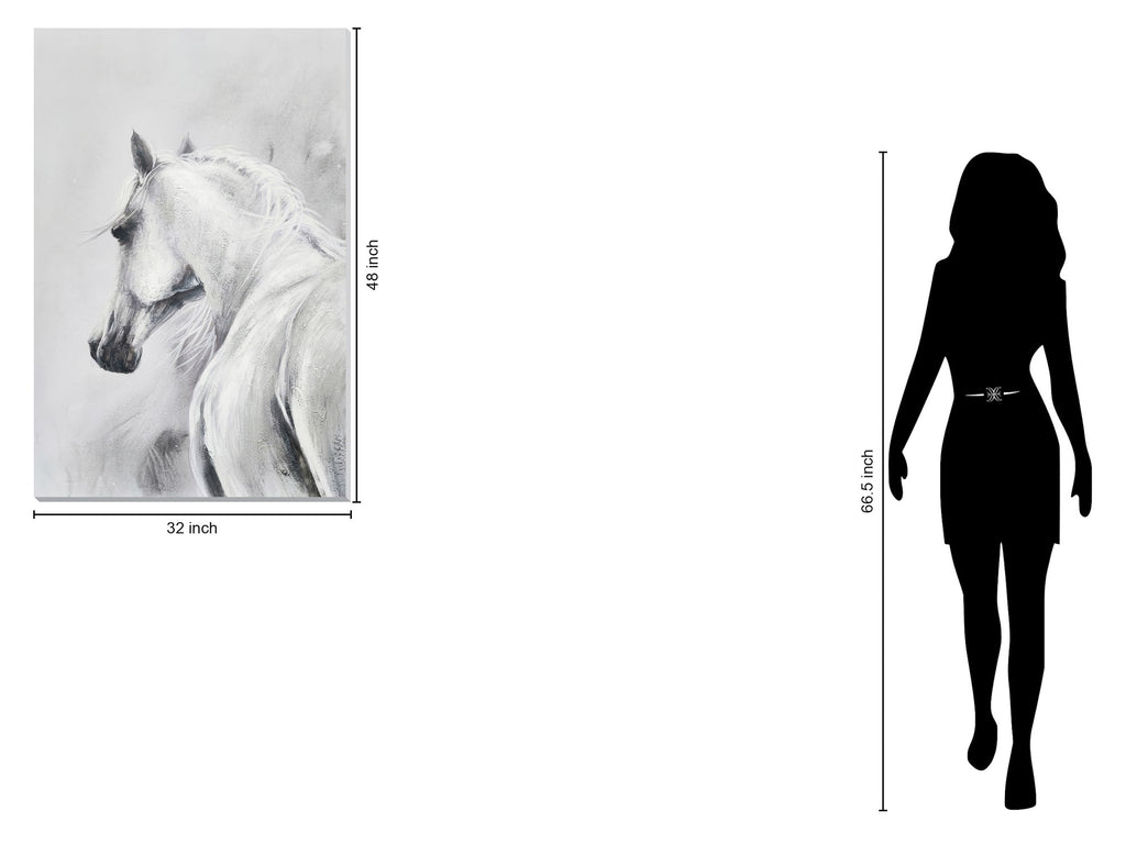 Silvery Grace: Modern Horse Abstract captures the elegant spirit of the horse through a contemporary lens. This hand-painted oil on canvas features a textured, silvery-white horse rendered with delicate brushstrokes and subtle shading, evoking a sense of grace and tranquility. The frameless wrapped canvas design enhances its modern appeal, making it a striking centerpiece for living rooms, bedrooms, or offices. Each piece is hand-embellished for added depth and uniqueness, arriving ready to hang with professional mounting hardware. Beyond its beauty, this artwork supports a social cause, donating a meal to a hungry American child with every purchase.