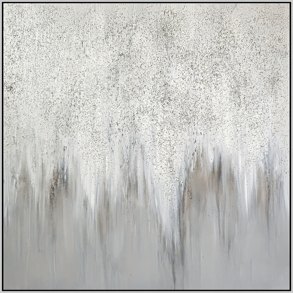 39x39 Hand Painted Textured Canvas Glitter In Frame - Gray