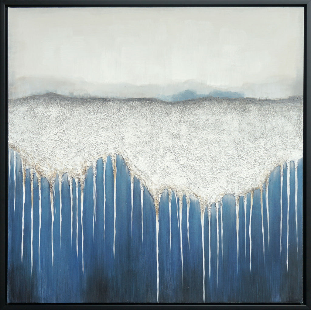 39x39 Hand Painted Textured Canvas With Foil In Frame - Blue