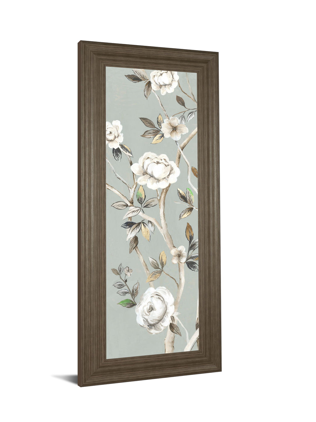 Step into a serene botanical retreat with this elegant wall art, where delicate white blossoms and softly muted gold-accented leaves intertwine against a calming blue-gray backdrop. The rich brown frame crafted from premium MDF and real glass enhances the artwork’s vibrant colors and intricate details, making it a refined focal point for any living room, bedroom, or hallway. Expertly made in the USA and arriving ready to hang, this piece invites a sophisticated touch of nature’s quiet beauty into your home, blending contemporary style with timeless tranquility.
