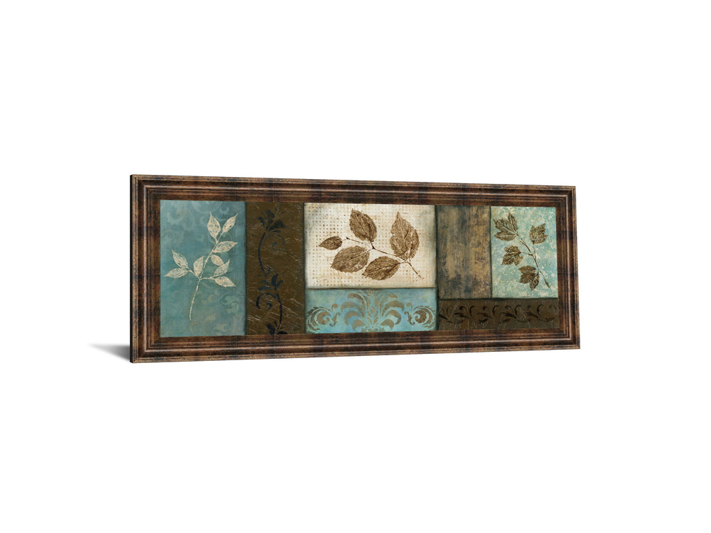 Step into a tranquil world with this captivating piece that blends delicate botanical motifs with a soothing palette of soft blues, earthy browns, and creamy beiges. The artwork's textured layers and subtle leaf patterns create a serene ambiance, perfect for bringing nature's quiet elegance into your living room or office. Framed in a rich dark chocolate finish with premium real glass, this piece offers a refined touch of sophistication while protecting the art beneath. Its horizontal orientation and transitional style make it a versatile addition that harmonizes effortlessly with various decor themes, inviting calm and timeless beauty into your space.