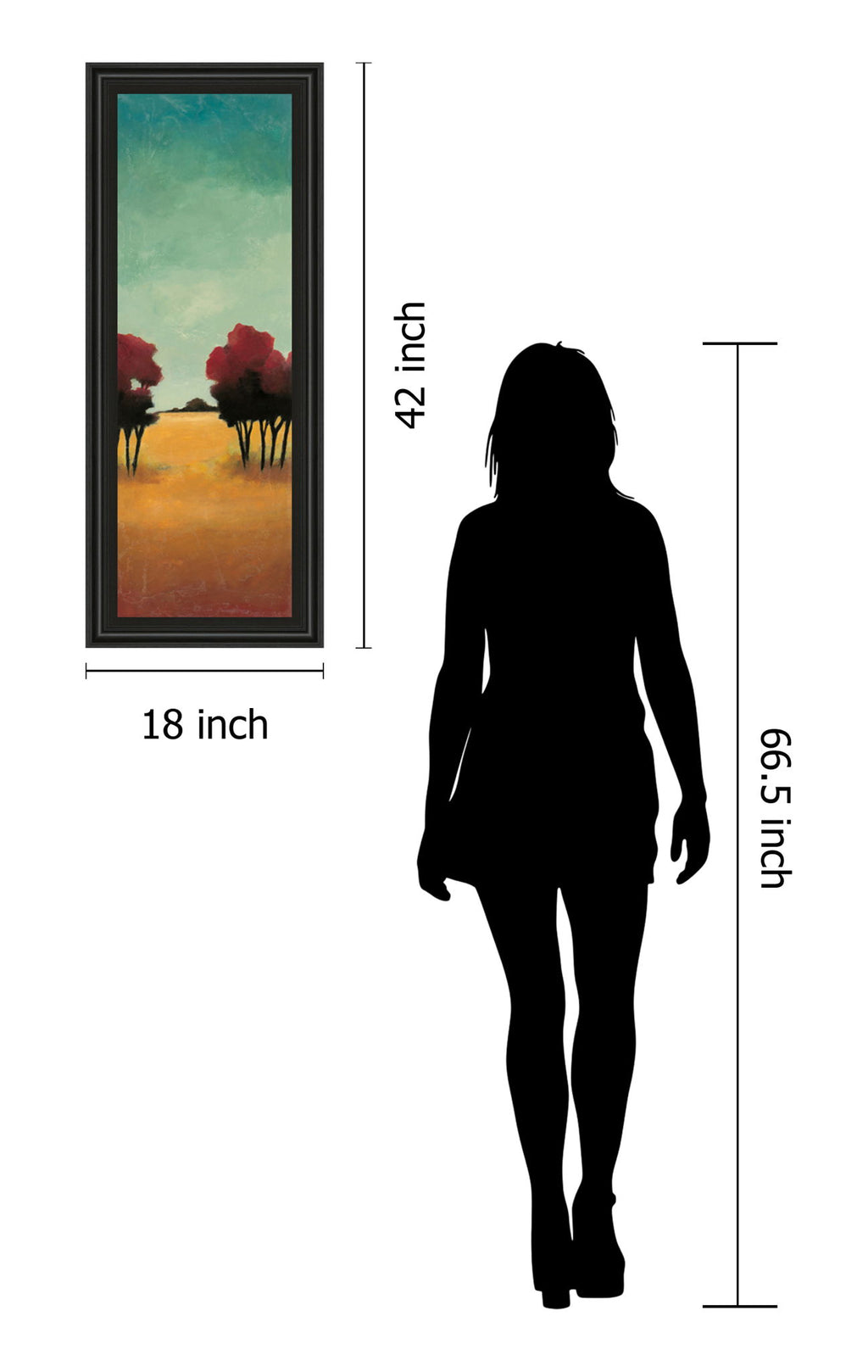 Step into a tranquil morning with this evocative artwork that captures the gentle transition of a new day. The soft teal sky melts into a warm golden field, framed by clusters of rich red trees that stand like silent sentinels. Encased in a sleek midnight aura frame with real glass, this piece not only protects but enhances the vibrant colors, making it a perfect addition to living rooms, bedrooms, or offices seeking a touch of calm elegance. Crafted with care and ready to hang, it invites you to pause and breathe in the peaceful beauty of nature's quiet moments.