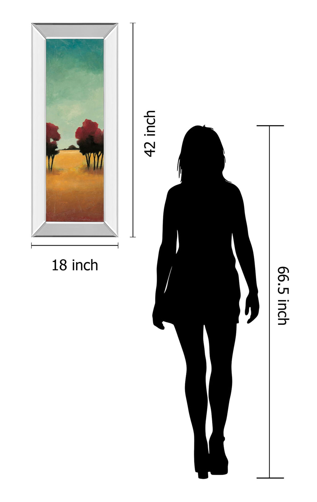 Step into the calm embrace of a fresh morning with this captivating framed wall art. The scene unfolds with rich red trees standing boldly against a gradient sky that shifts from teal to soft green, resting above golden fields that glow warmly. Housed in a sleek mirrored frame, the piece reflects light and adds a modern touch, enhancing the vibrant hues and textured details of the artwork. Crafted with premium glass for clarity and ready to hang, it transforms any living room, bedroom, or office into a serene retreat filled with peaceful elegance and timeless beauty.