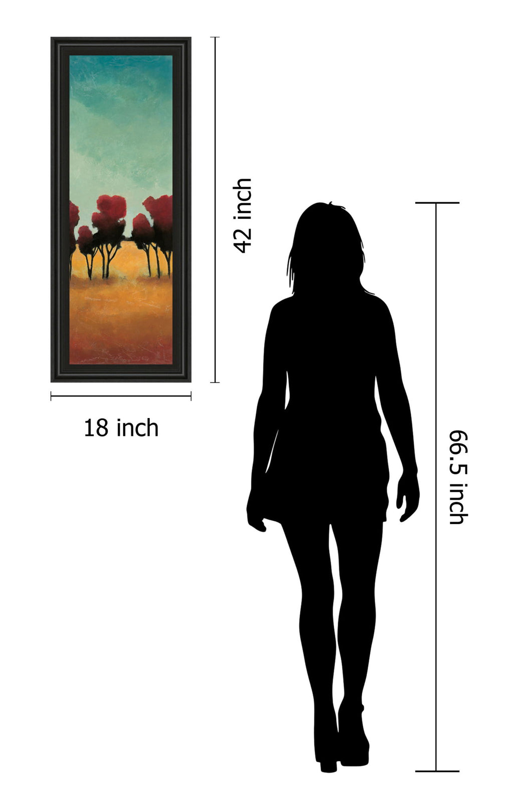 Step into a peaceful moment with this captivating botanical scene that blends vivid reds and warm golden hues beneath a calming teal sky. The vertical composition draws the eye upward, inviting you to linger in the serene landscape where nature's beauty unfolds with quiet elegance. Framed in a deep midnight aura finish, this piece adds a sophisticated touch to any living room, office, or bedroom, crafted with premium real glass to enhance color vibrancy and durability. Ready to hang and made with expert care, it brings a fresh, tranquil energy to your space, perfect for those who appreciate art that soothes and inspires.