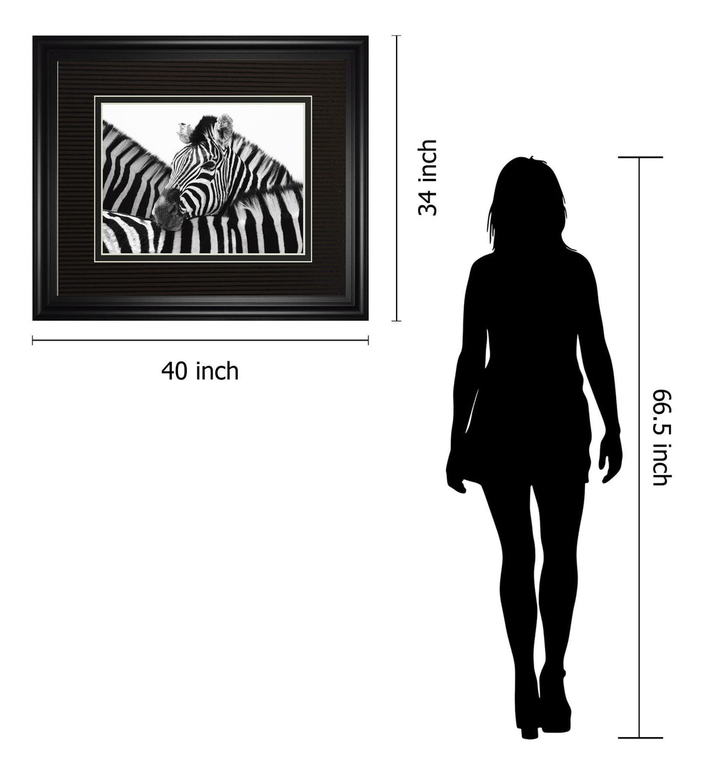 Step into a moment of quiet connection with "A Safe Place," a stunning photographic wall art that captures the tender embrace of two zebras. Their striking black and white stripes intertwine, creating a powerful visual harmony that speaks to the beauty of companionship and trust in the wild. This contemporary piece is framed with a wide black frame, double matting in black and cream, and premium real glass, offering a refined gallery-quality finish that enhances every detail. Perfectly sized at 34 by 40 inches, it brings a serene and sophisticated touch to living rooms, offices, or bedrooms, inviting a sense of calm and natural elegance into your space.