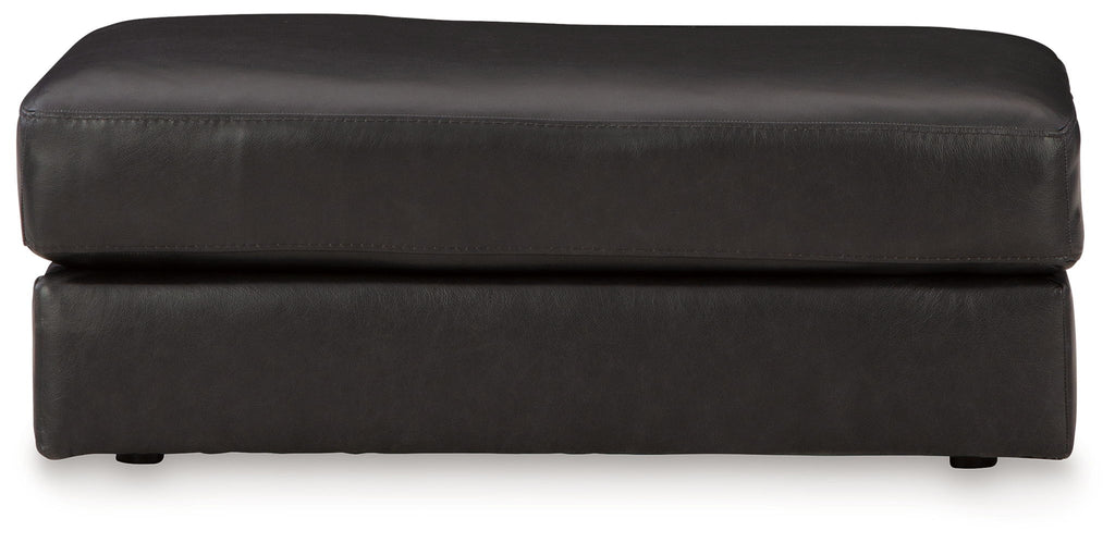 Keen on crisp, contemporary design? Adore the pleasure of leather? Look no further. This ottoman satisfies on every level. Richly textured and decadently supple, the cushion is wrapped with expertly matched leather and faux leather upholstery in an on-trend onyx tone. The ottoman's clean-lined profile completes its simply chic appeal.