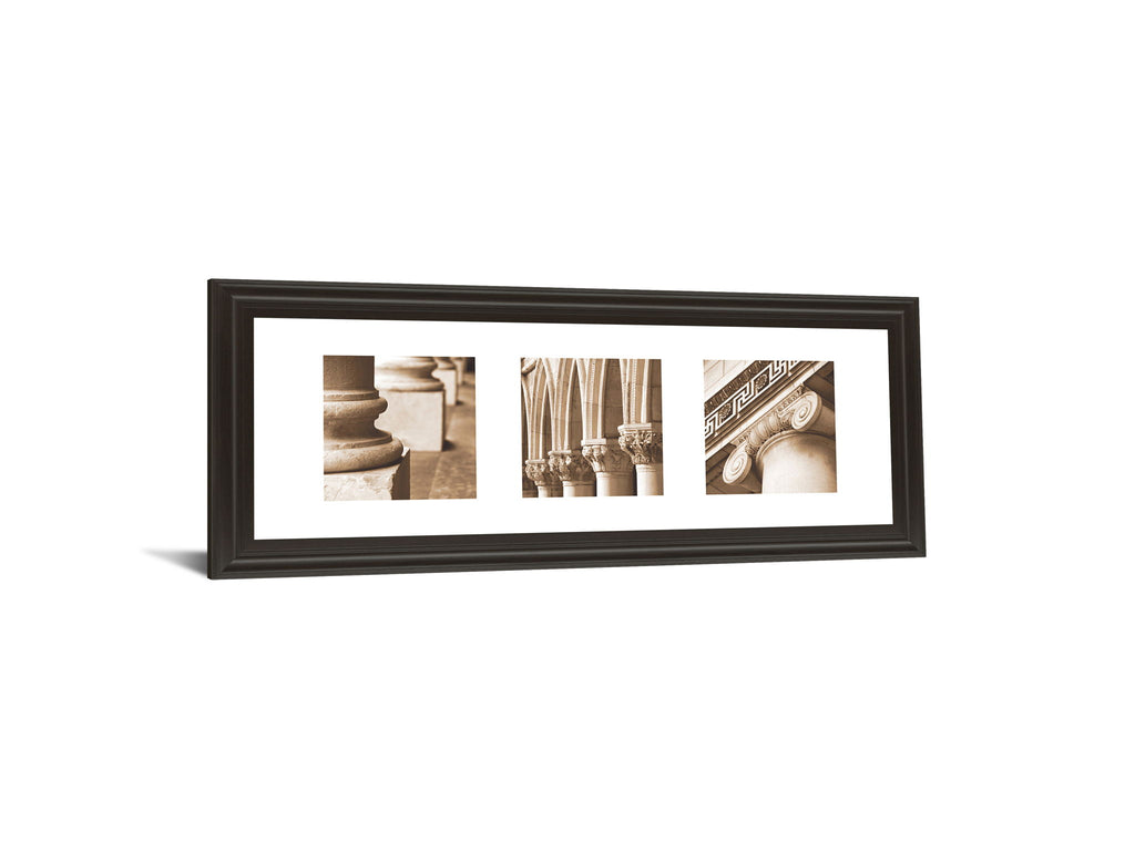 Step into a world of classical grandeur with this exquisite three-panel wall art showcasing the intricate beauty of architectural columns and arches. Rendered in warm sepia tones, each photograph captures the delicate craftsmanship and historic elegance of timeless structures. The dark chocolate frame and crisp white matting enhance the depth and sophistication of the piece, making it a perfect addition to living rooms, offices, or hallways. Expertly crafted and ready to hang, this artwork invites you to bring a touch of refined tradition and serene beauty into your space.