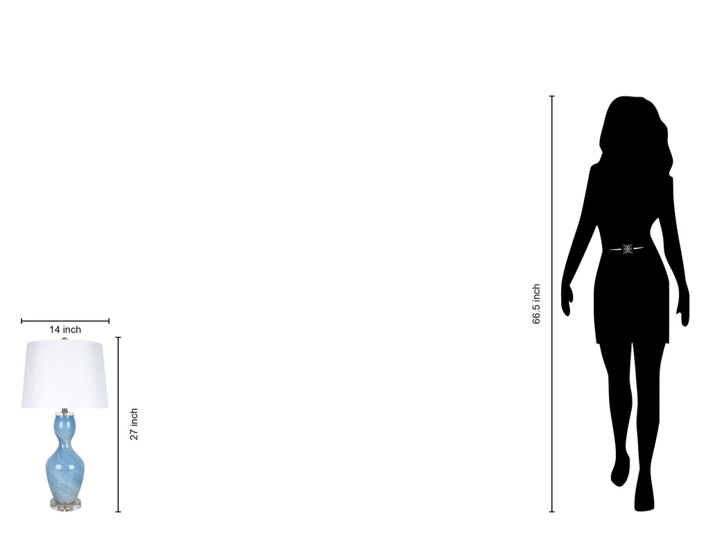 The Azure Elegance table lamp captivates with its art glass body, showcasing a serene blend of blue and white hues. Its gourd shape adds a graceful silhouette, while the clear crystal base offers a touch of sophistication. Topped with a white linen shade, this lamp diffuses a soft, inviting glow, ideal for a bedside table or a cozy reading nook. The 3-way rotary switch allows for adjustable lighting, making it both functional and stylish.