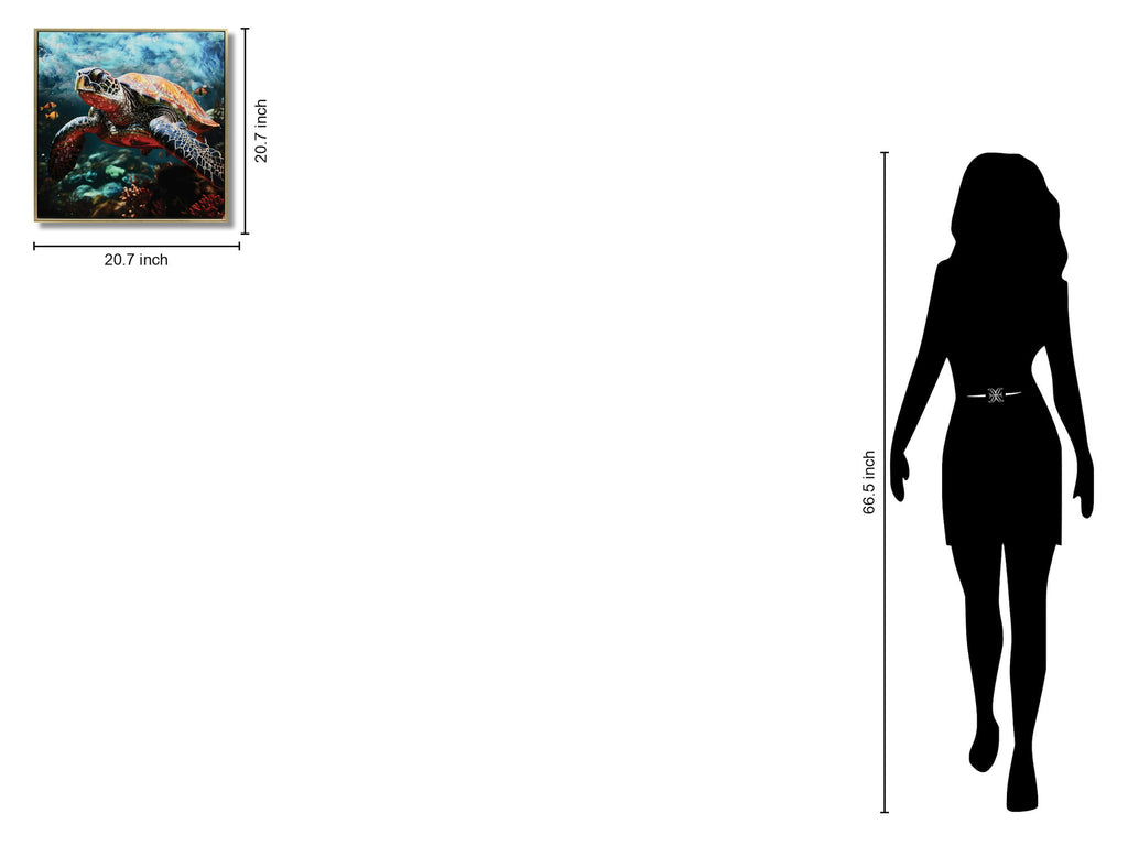 Dive into the vibrant underwater world with “Golden Drift: Vibrant Sea Turtle,” a stunning graphic art piece printed on durable gloss canvas. This framed artwork features a beautifully detailed sea turtle, enhanced with hand-applied accents that add texture and depth, making each piece truly unique. The glossy finish amplifies the brilliant colors and light, bringing a sophisticated aquatic scene to your living room or office. Ready to display with professional mounting hardware, this contemporary wall art invites the serenity and adventure of the ocean into your space.
