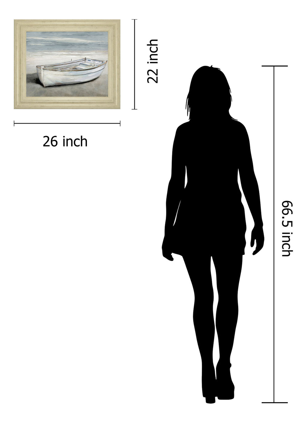 This evocative piece invites you to a quiet moment by the shore, where a lone rowboat rests gently on the sand. Painted in soft shades of gray, ivory, and blue, the artwork captures the calm and timeless beauty of coastal life. The wide ivory frame enhances the subtle hues and adds a refined touch, making it a perfect addition to any living room, bedroom, or office. Crafted with care and protected by real glass, this framed art brings a sense of peaceful reflection and seaside tranquility to your space.