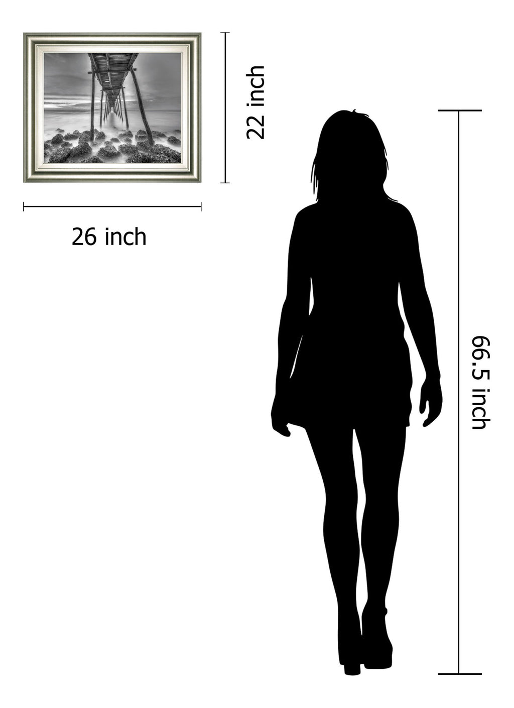 Step into a moment of tranquil beauty with this striking photographic wall art, capturing the view beneath a rustic bamboo pier. The misty waters swirl gently around textured rocks, creating a dreamlike scene that invites quiet reflection and calm. Framed in a sleek silver finish with a soft cream mat, this piece blends contemporary elegance with coastal charm, making it a perfect addition to any living room, bedroom, or office seeking a serene and sophisticated touch.