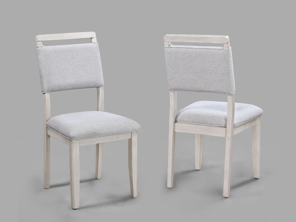 Create a warm and inviting dining space with this stylish and timeless set. Featuring a beautifully crafted round tabletop with a light, weathered finish, it brings a touch of rustic charm while maintaining a modern aesthetic. The sturdy legs provide lasting durability, making it perfect for everyday meals or special gatherings. Softly upholstered chairs offer both comfort and elegance, with a chic neutral fabric that complements any décor. Whether you're enjoying a casual breakfast or hosting family and friends, this set delivers the perfect blend of charm, comfort, and functionality for any home.