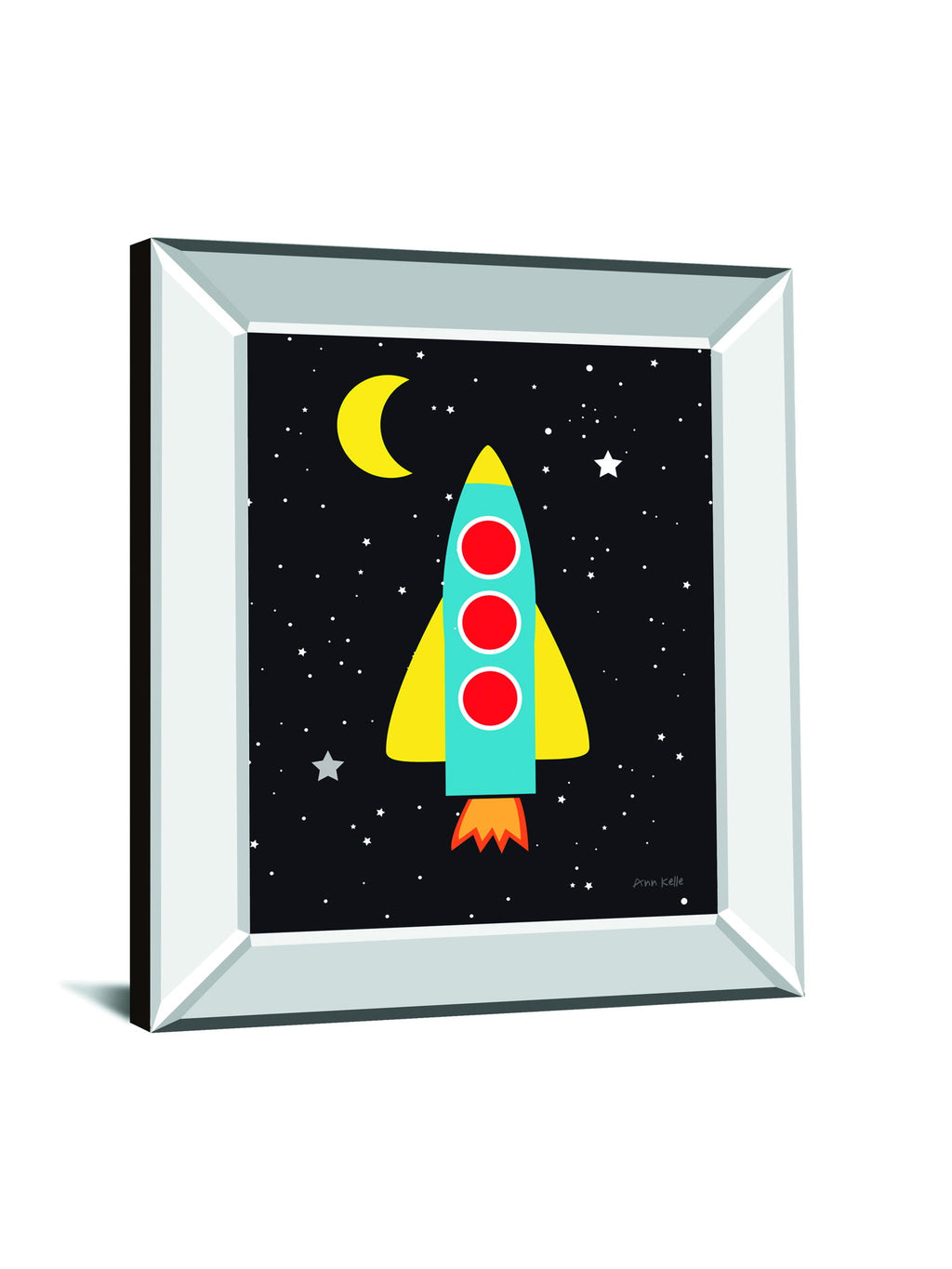 Embark on a cosmic adventure with “Rocket Flight,” a lively framed wall art piece designed to inspire young dreamers. This vibrant graphic showcases a playful rocket soaring through a star-studded night sky, illuminated by a crescent moon and scattered stars. The bold palette of bright yellows, reds, blues, and oranges captures the imagination, making it an ideal addition to kids' rooms, playrooms, or nurseries. Encased in a sleek mirrored frame, the artwork adds a modern touch and depth to any space. Crafted with premium materials and crystal-clear glass, this ready-to-hang piece promises durability and vivid color vibrancy, turning any room into a gateway to the stars.