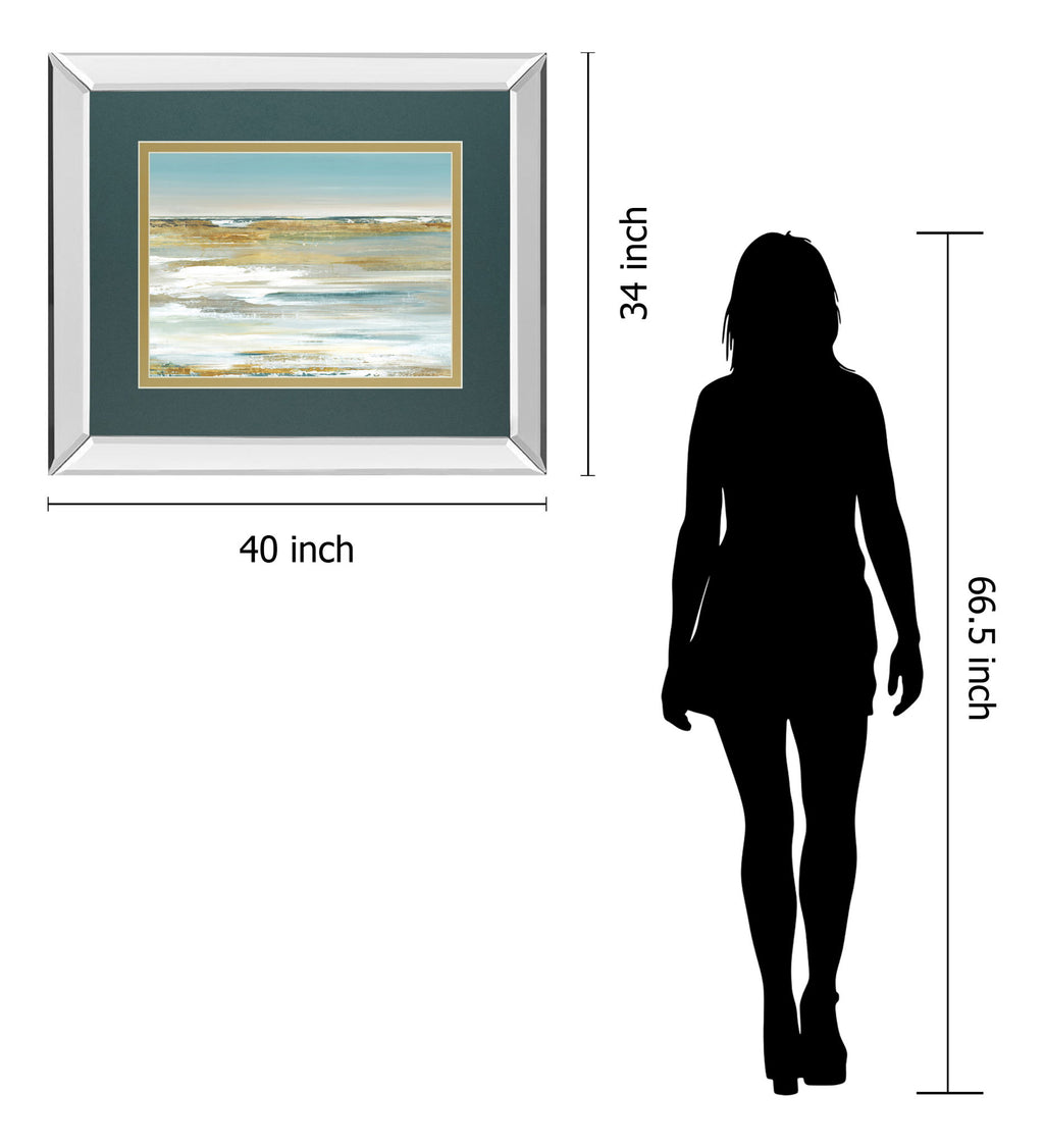 Immerse yourself in the tranquil beauty of "Blue Horizon," an abstract landscape that evokes a sense of calm and reflection. The artwork's soothing palette of blues, golds, and soft neutrals flows seamlessly across the canvas, inviting a peaceful ambiance into any room. Encased in a sleek 2.5-inch mirrored frame, this piece not only enhances the depth and vibrancy of the colors but also adds a touch of modern sophistication. Double matting in complementary blue and beige tones offers a refined gallery-style finish, while premium real glass protects the artwork and intensifies its luminous quality. Perfectly sized for living rooms, bedrooms, or offices, this framed wall art brings effortless elegance and a serene focal point to your contemporary décor.