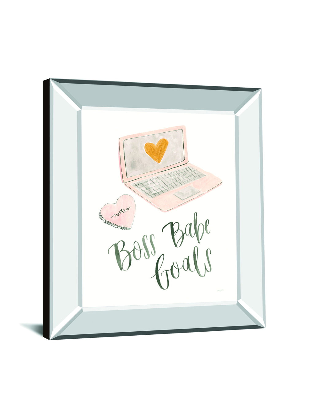 Embrace the spirit of ambition and empowerment with this charming framed wall art, featuring a delicate watercolor illustration of a laptop adorned with a golden heart and a heart-shaped notebook labeled 'notes.' The elegant hand-lettered phrase 'Boss Babe Goals' inspires confidence and motivation, making it an ideal addition to any living room, bedroom, or office. Housed in a sleek 2.5-inch mirrored frame, this piece combines modern sophistication with a warm, feminine touch. Crafted with premium real glass to protect its vibrant details, it arrives ready to hang, effortlessly enhancing your space with a blend of chic design and uplifting energy.