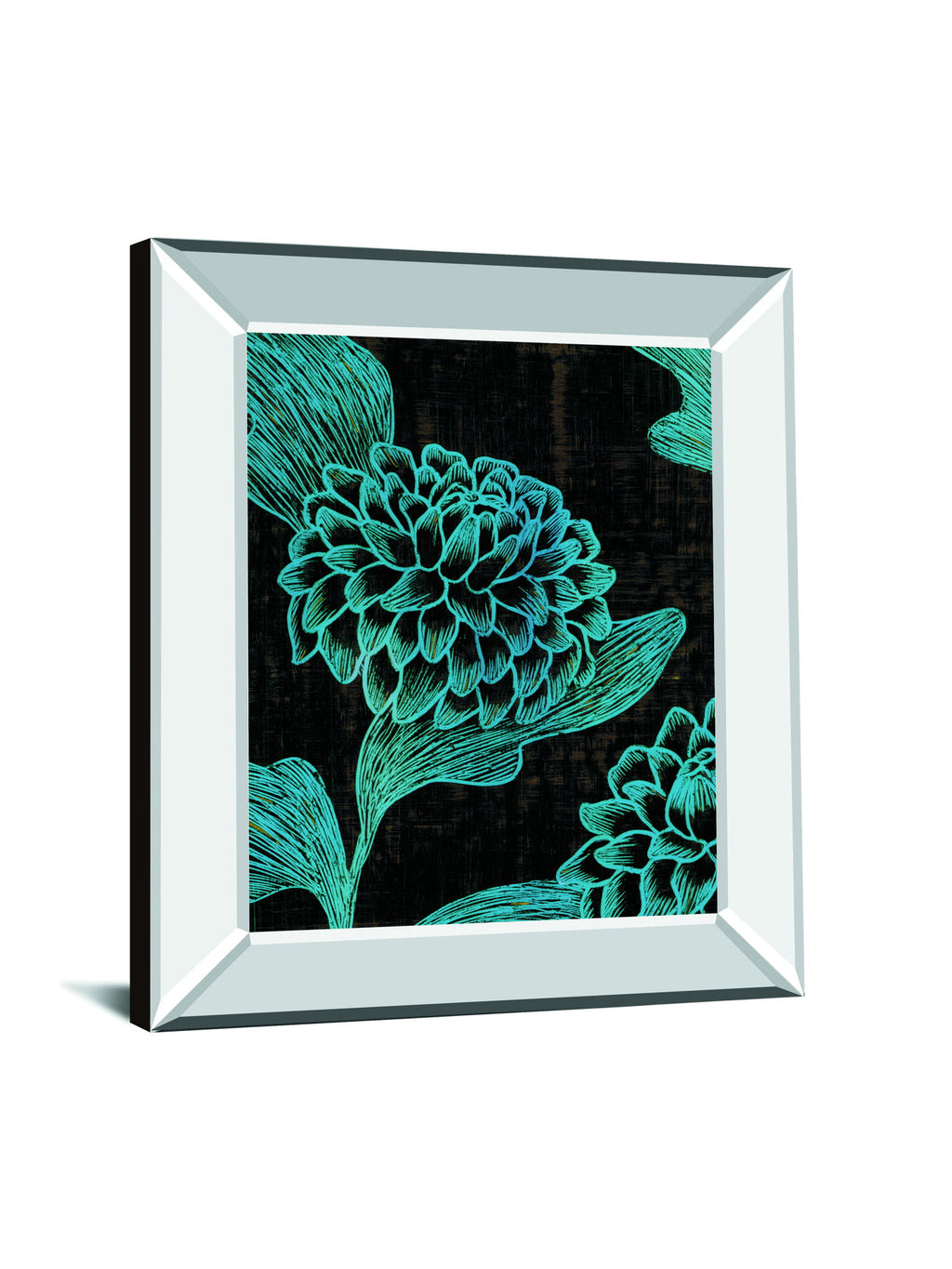 Immerse your space in the captivating allure of this floral graphic art, where vibrant turquoise petals emerge boldly against a textured black background. The sleek mirrored frame adds a touch of modern luxury, reflecting light and enhancing the artwork’s vivid colors and intricate details. Crafted with premium real glass, this piece not only protects but also intensifies the visual impact, making it a sophisticated centerpiece for any living room or bedroom. Ready to hang and designed to elevate contemporary interiors, it brings a striking blend of elegance and botanical charm to your walls.