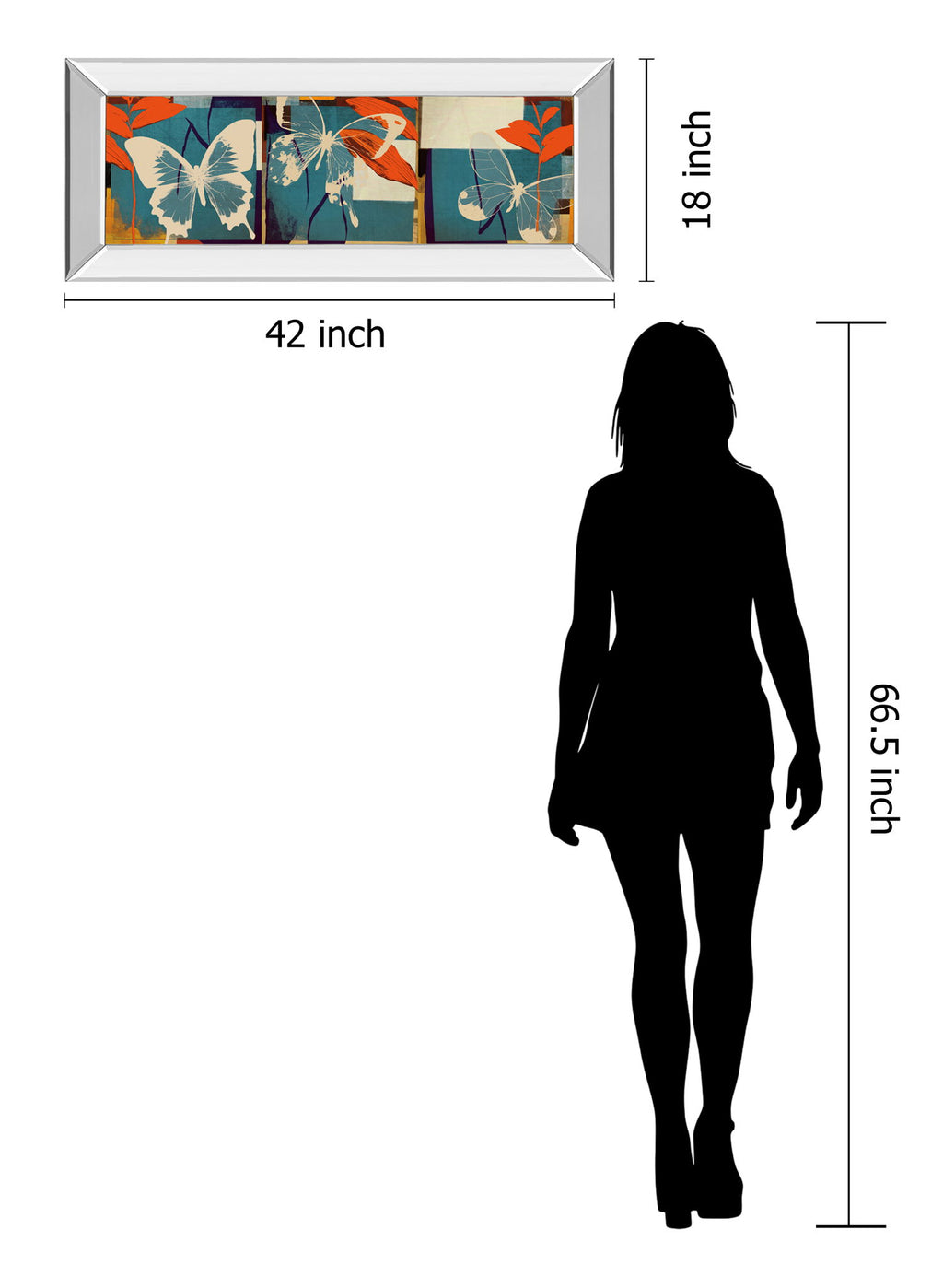 Immerse yourself in the delicate beauty of nature with this captivating Butterfly Trio artwork. Featuring soft cream butterflies gracefully set against a vibrant teal backdrop accented by bold burnt orange leaves, this piece evokes a sense of transformation and tranquility. Encased in a sleek mirrored frame, it reflects light to add depth and elegance, making it a stunning focal point for your living room, bedroom, or office. Crafted with premium real glass and ready to hang, this contemporary wall art effortlessly blends modern style with natural inspiration, perfect for enhancing any space with a touch of refined charm.