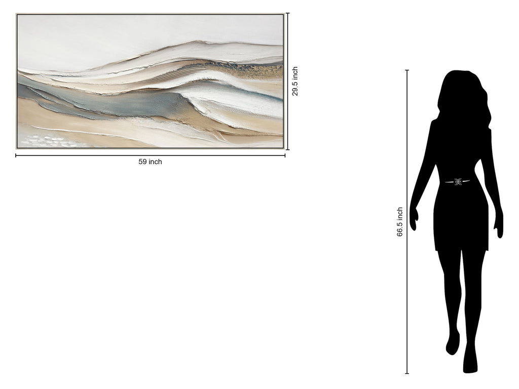 Experience tranquility with 'Calming Flow,' a captivating piece that evokes the gentle ebb and flow of nature. This hand-embellished graphic art features soothing tones of beige, white, and blue, creating a harmonious and calming effect. Perfect for adding a touch of elegance to any living space.