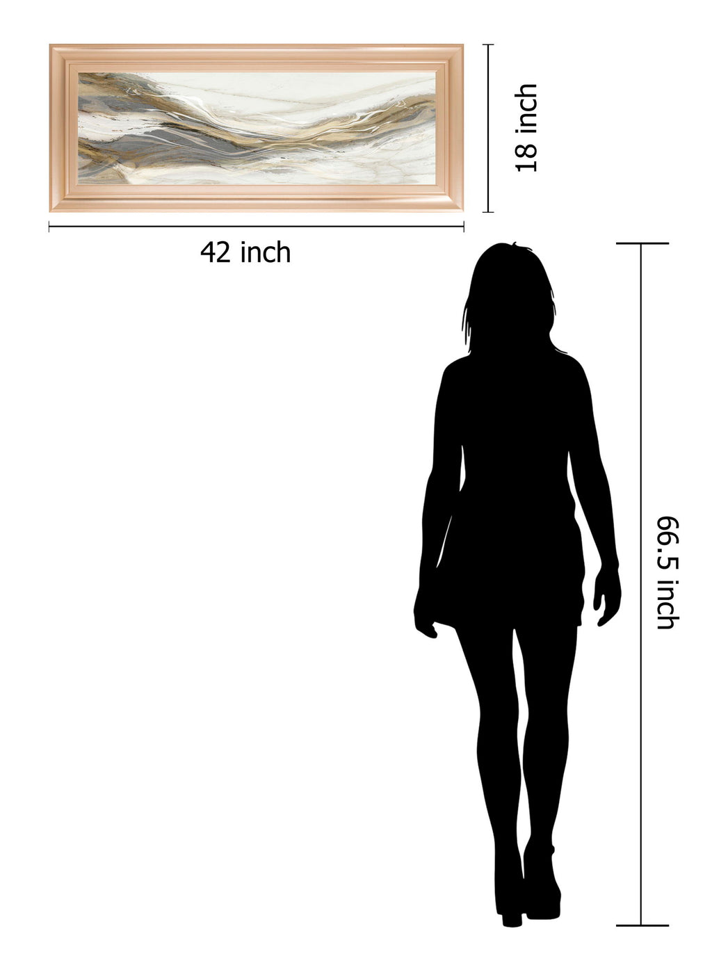Flowing Harmony invites you into a tranquil world where abstract landscapes blend seamlessly with soft, natural tones. This piece captures the gentle movement of earth and sky through swirling layers of cream, gray, and beige, accented by warm rose gold framing that adds a touch of elegance. Crafted with premium materials and protected by crystal-clear glass, it promises durability and vibrant color clarity, making it a refined centerpiece for your living room, office, or bedroom. Ready to hang and thoughtfully made in the USA, this artwork transforms any space with its soothing presence and contemporary charm.