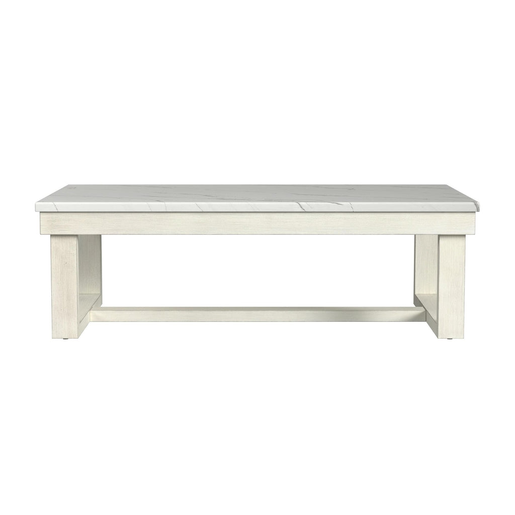 Bring a touch of serene elegance to your living room with the exquisite Catilin Coffee Table. Its brushed white finish exudes a gentle charm, while the faux marble top provides a sophisticated contrast, emulating the timeless beauty of natural stone. Designed for posh gatherings or quiet moments with a book and a cup of tea, this table is both functional and stylish. Its clean lines and open base make it a perfect centerpiece, effortlessly blending into your décor while adding a hint of refined luxury. Let the Catilin Coffee Table become the heart of your home's style and warmth.