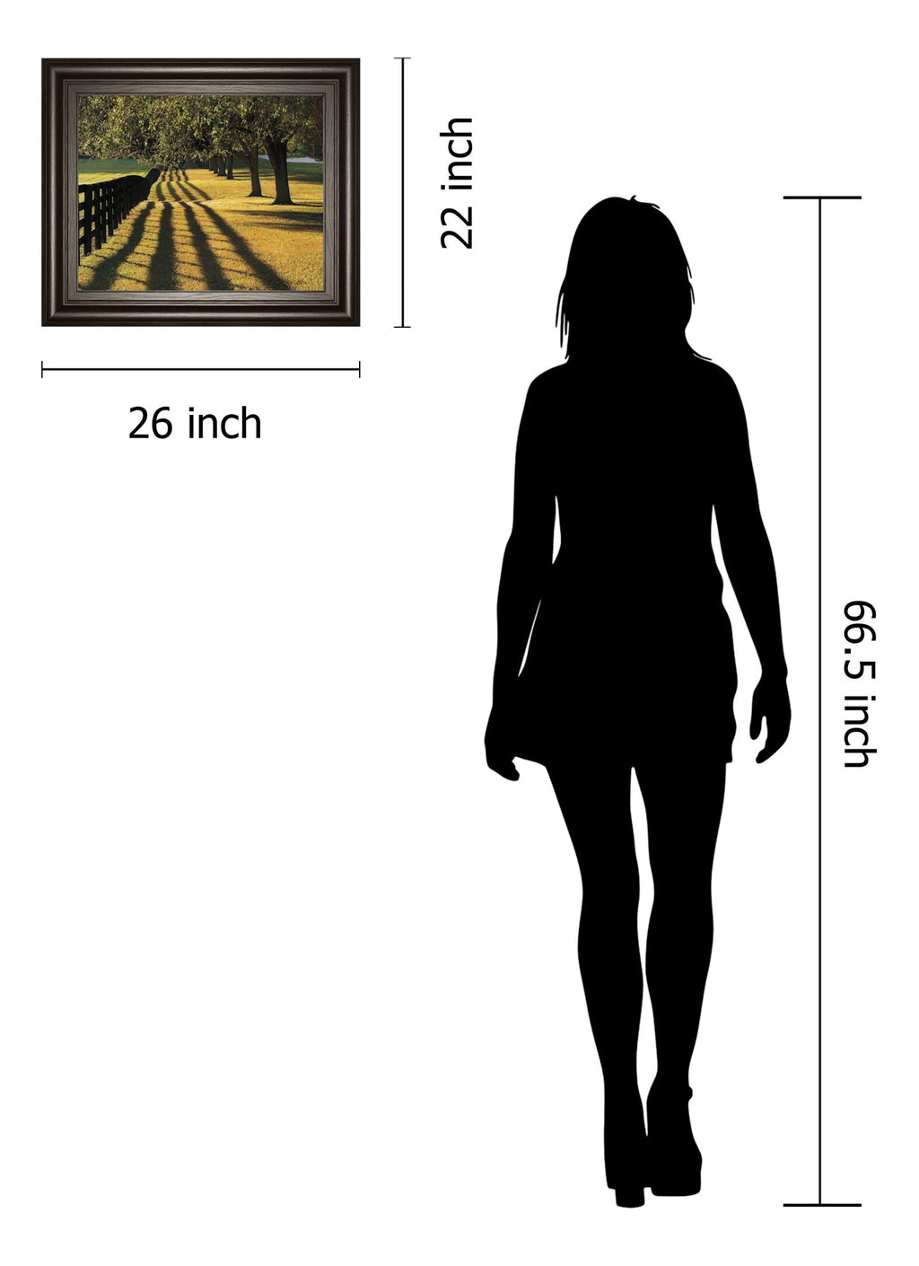 Step into a tranquil countryside scene where the late afternoon sun casts long, dancing shadows across a golden field. This framed photograph captures a rustic fence stretching alongside a row of stately trees, their shadows creating a rhythmic pattern that evokes peace and timeless beauty. The warm hues of dark brown, green, and gold blend seamlessly to bring nature's calm indoors, making it an ideal addition to living rooms, offices, or bedrooms. Encased in a dark chocolate frame with premium real glass, this artwork not only enhances color vibrancy but also offers lasting protection. Ready to hang, it invites you to pause and savor the serene charm of rural life.