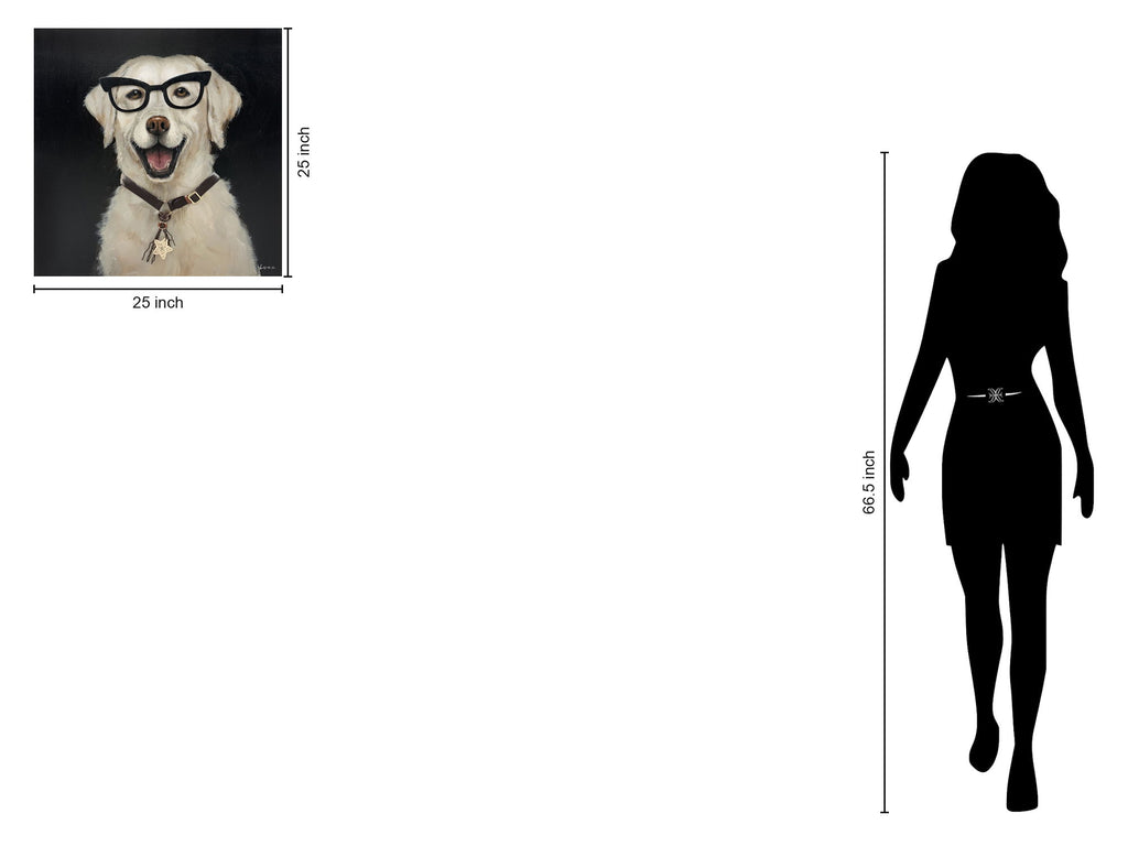 Cheerful Scholar Pup - 25" x 25" Framed Wall Art