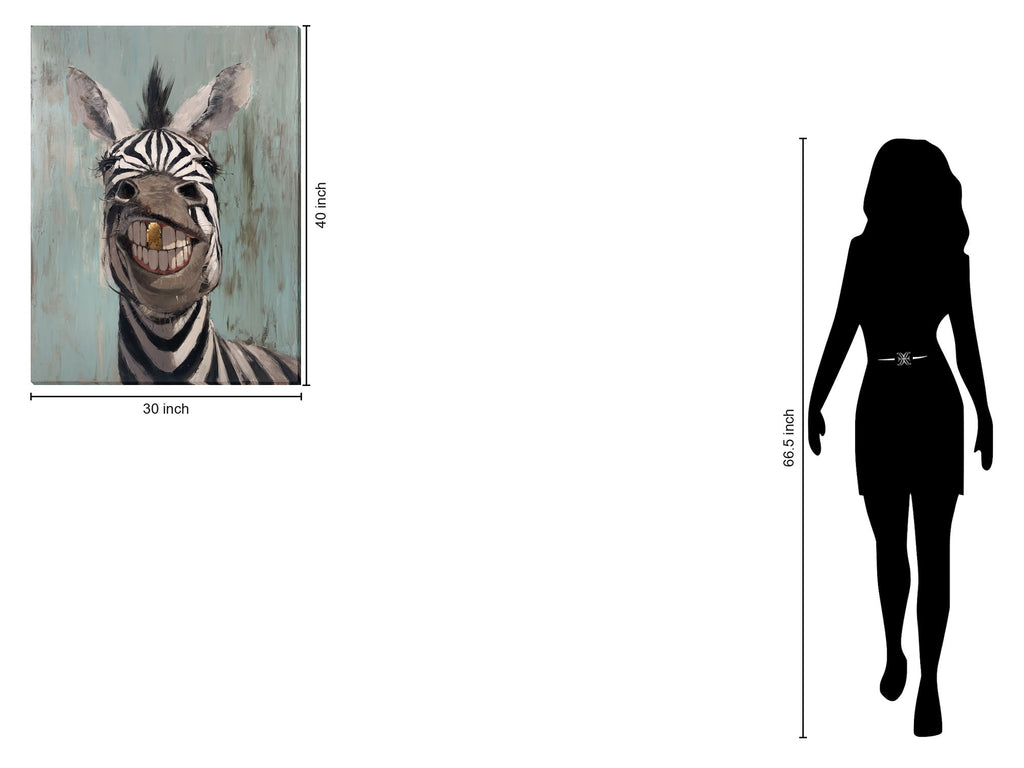 Bring a touch of whimsy to your space with this playful zebra portrait. The hand-embellished acrylic artwork captures the zebra's cheeky expression, adding a unique and joyful vibe to any room. Perfect for animal lovers and those looking to add a fun element to their decor.