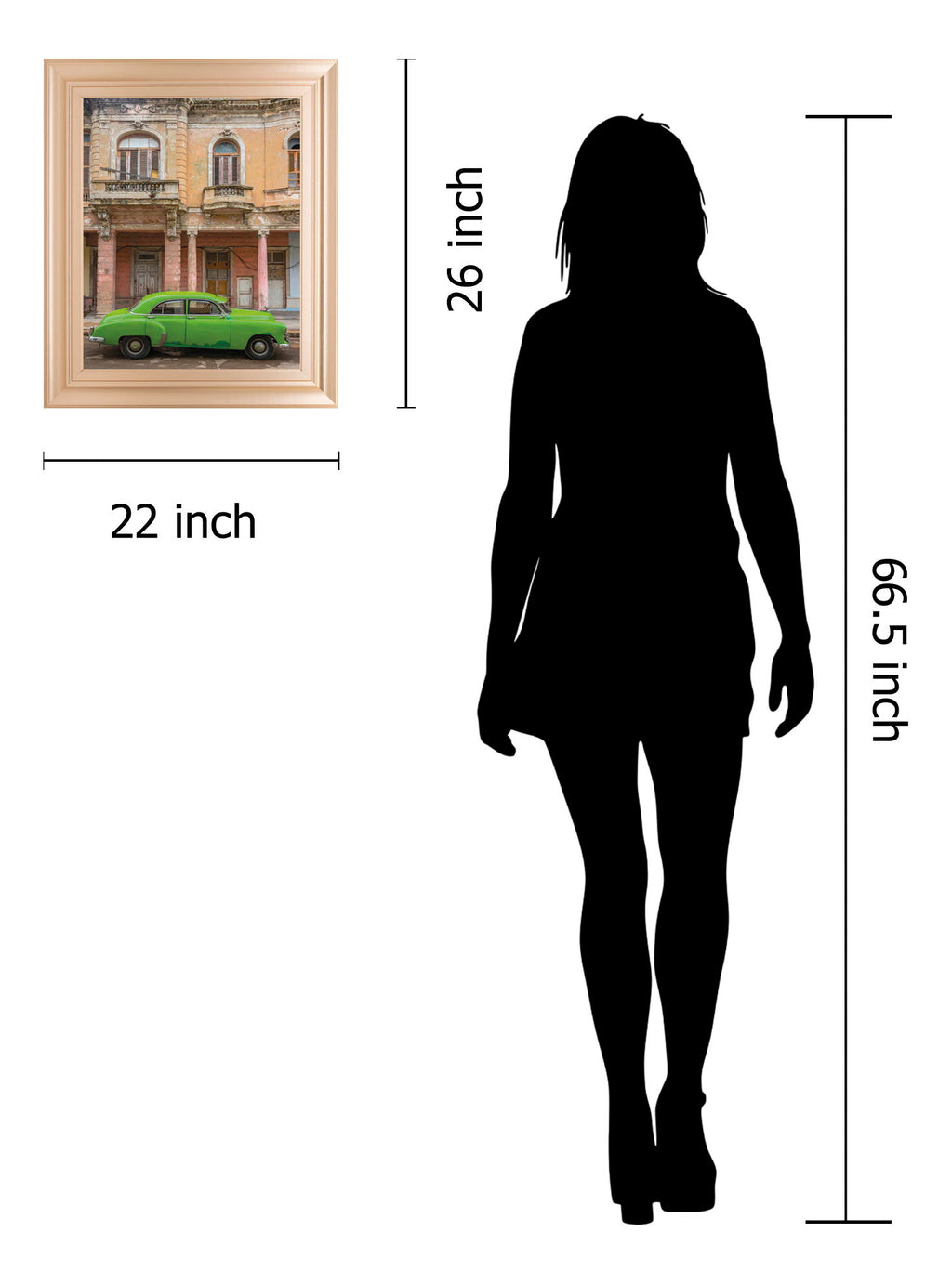 Transport yourself to a bygone era with this captivating image of a vibrant green vintage car parked against the weathered pastel walls of a historic city building. The scene captures the essence of timeless urban charm, where stories of culture and history linger in every crack and faded paint. Encased in a warm rose gold frame, this piece adds a sophisticated touch to any living room or office, inviting you to experience the romance and nostalgia of classic city streets. Crafted with premium materials and protected by crystal-clear glass, it’s ready to bring a slice of elegant retro beauty into your space.