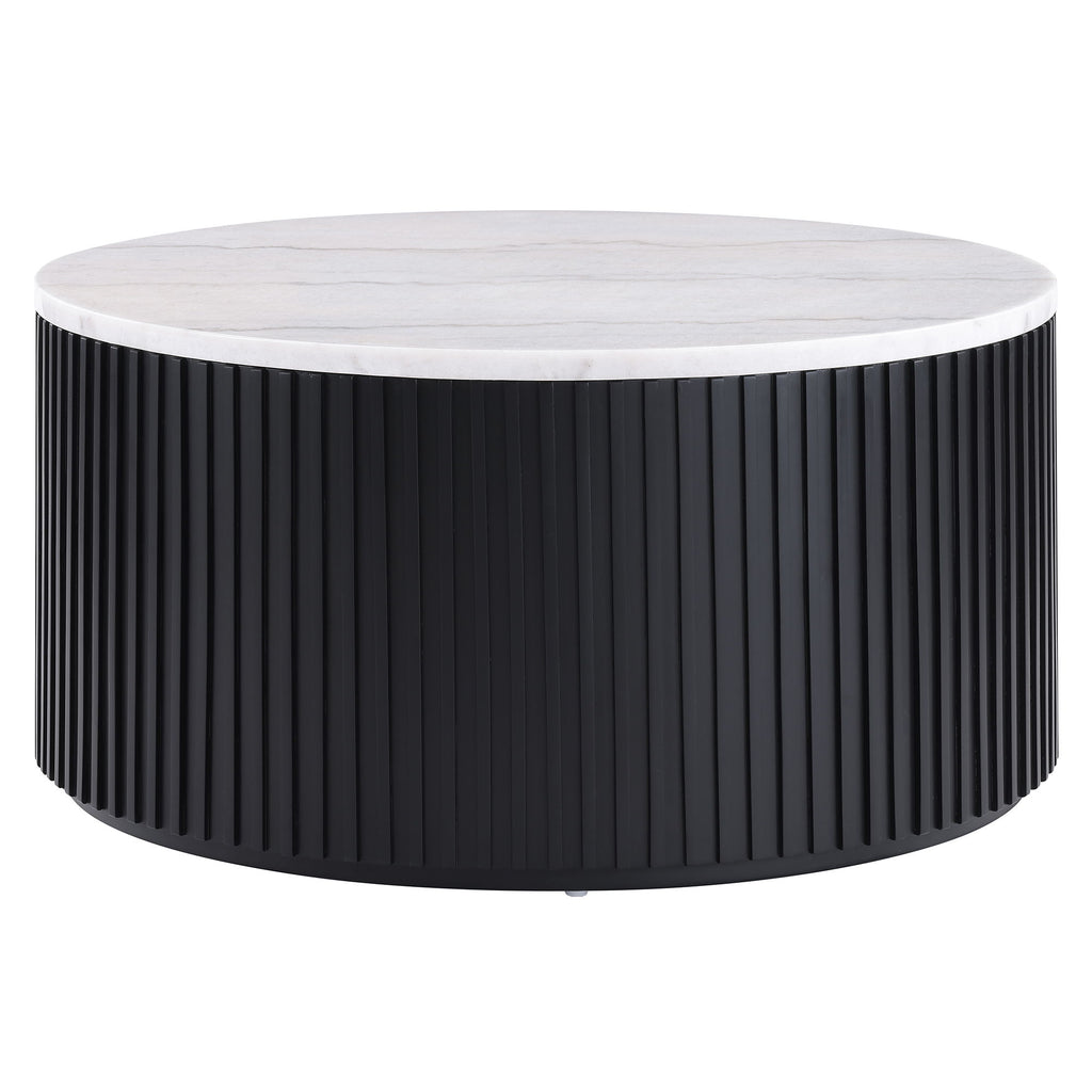 Inspired by Art Deco and Empire styling, the Colvin 36" Round Coffee Table adds refined elegance to any space. Its oak-veneered top in a sleek finish with reeded base brings timeless sophistication, ideal for those who appreciate sleek design. Featuring casters for easy mobility, this table is perfect for repositioning in front of a sofa or moving for cleaning. The spacious round top offers ample room for decor or essentials, combining luxury, practicality, and versatility to elevate your home’s style.