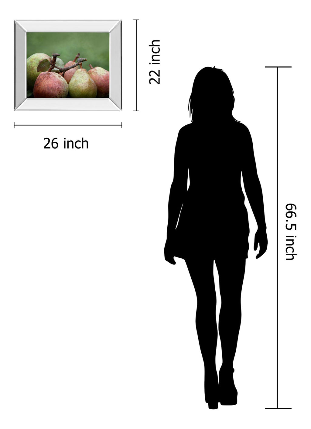 Immerse yourself in the quiet elegance of nature with this close-up portrayal of ripe pears resting against a soothing green backdrop. The soft hues of green, brown, and pink blend harmoniously, capturing the natural beauty and texture of the fruit. Encased in a sleek mirrored frame, the piece reflects light and space, adding a modern touch that enhances the artwork's depth and vibrancy. Protected by premium real glass, every detail is preserved with clarity, making this artwork a refined addition to your living room, kitchen, or dining area. Crafted with care and ready to hang, it invites a serene and sophisticated atmosphere into your home.