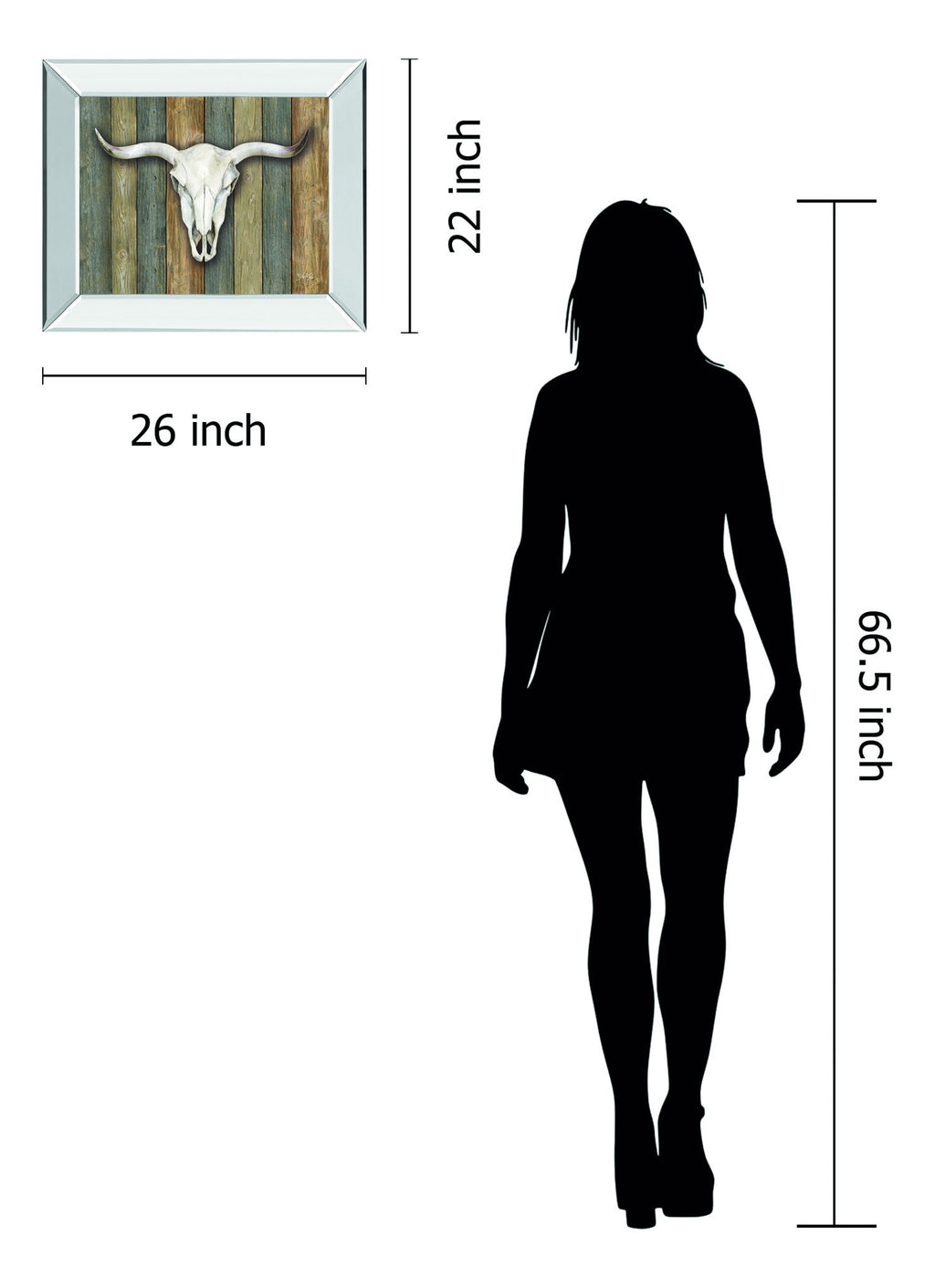 Transform your space with the captivating Skull Illumination, a framed wall art piece that perfectly blends rustic allure with contemporary style. The detailed animal skull is set against a richly textured wood plank background, creating a striking contrast that draws the eye. Encased in a sleek mirrored frame, this artwork adds a subtle touch of sophistication while the crystal-clear glass preserves the vivid colors and intricate details. Ideal for living rooms, offices, or dens, this ready-to-hang piece is crafted with expert care in the USA, promising a timeless addition that elevates your home décor with bold character and refined elegance.