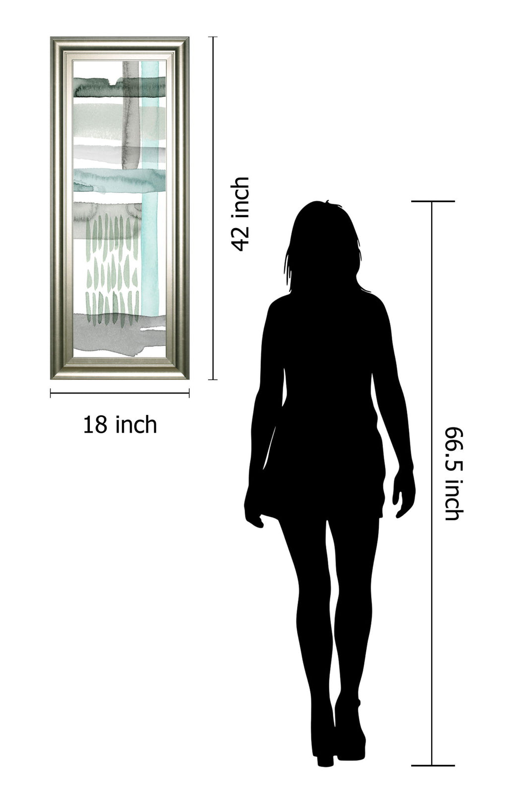 Serene Strata invites you into a tranquil world of soft aqua, gray, and muted green brushstrokes layered in a harmonious abstract design. This vertical composition captures a delicate balance between fluidity and structure, evoking a sense of calm and modern sophistication. Encased in a sleek silver frame with premium real glass, the mixed media artwork combines paper textures and masterful craftsmanship to create a refined focal point for any living room or office. Its understated industrial style and ready-to-hang convenience make it a perfect choice for those seeking subtle elegance with a contemporary edge.