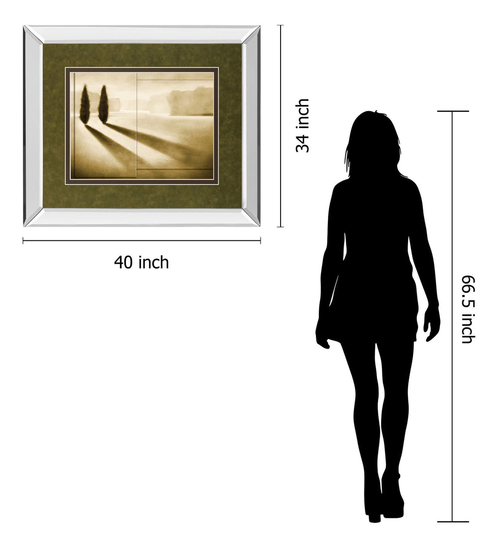 Step into a tranquil world with this serene abstract landscape that invites quiet reflection and calm. Two tall, shadowed forms stretch across a muted horizon, their elongated silhouettes blending softly with the gentle earth tones of olive, brown, beige, and cream. The contemporary mirrored frame adds a sophisticated reflective depth, while the double-matted design enhances the gallery-style presentation, making it a refined focal point for any living room or office. Crafted with premium real glass, this piece promises vibrant detail and lasting beauty, effortlessly elevating your space with a modern yet timeless elegance.