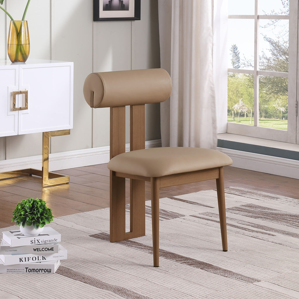 Dario - Faux Leather Dining Chair With Brown Frame (Set of 2) - Tan