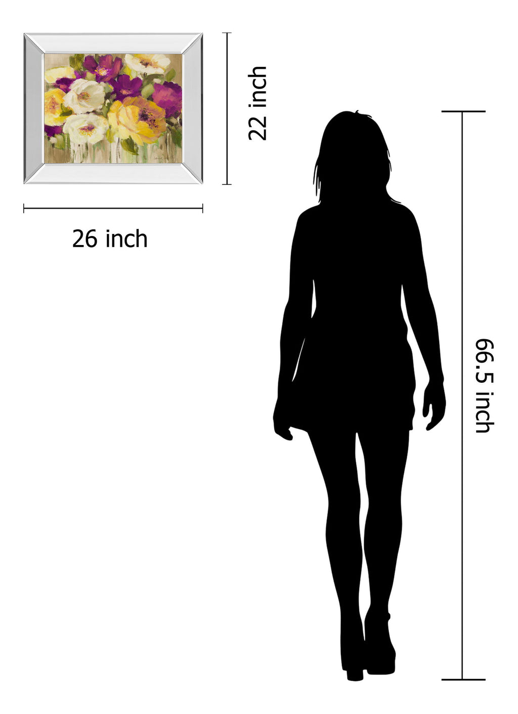 This captivating floral composition bursts with vibrant purples, yellows, and soft whites, bringing a fresh and modern botanical charm to your space. Set within a sleek mirrored frame, the premium real glass enhances every brushstroke, adding depth and a subtle shimmer that catches the light beautifully. Perfect for living rooms, bedrooms, or offices, this artwork effortlessly combines contemporary elegance with nature's vivid colors, creating an inviting atmosphere filled with warmth and sophistication.