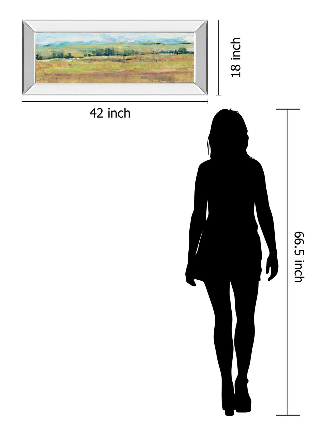 Step into a world of tranquility with this captivating landscape that gently blends soft blues, greens, and earthy tones. The serene horizon stretches across the canvas, inviting you to pause and reflect amidst the subtle brushstrokes that evoke a peaceful countryside scene. Encased in a sleek mirrored frame, this artwork not only protects the vibrant colors but also adds a modern, reflective dimension, making it a stunning centerpiece for any living room, office, or bedroom. Crafted with care, it brings a sophisticated yet calming presence to your space, perfect for those who appreciate a harmonious blend of nature and contemporary design.