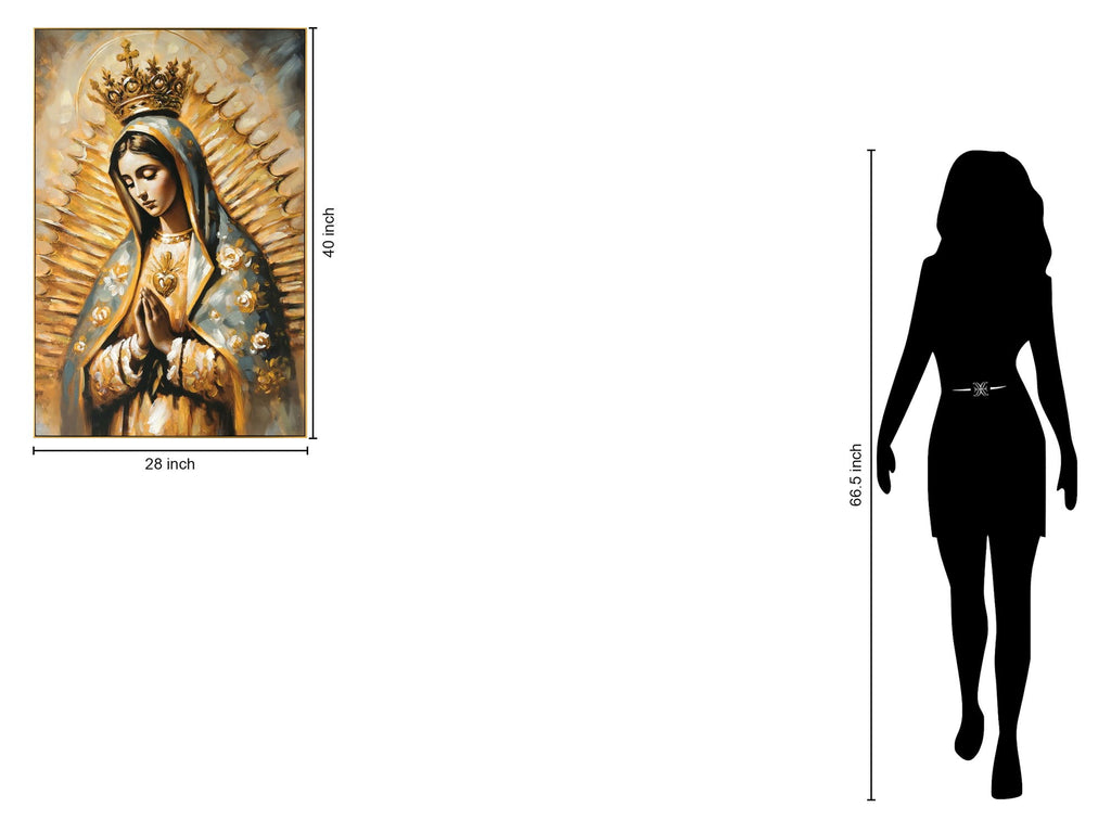 Experience the serene beauty of 'Divine Serenity,' a captivating oil painting that embodies grace and tranquility. This Hand-embellished masterpiece features a divine figure adorned with golden hues and intricate details, making it a perfect focal point for any room. The framed artwork's vertical orientation enhances its majestic presence, inviting a sense of peace and reflection.