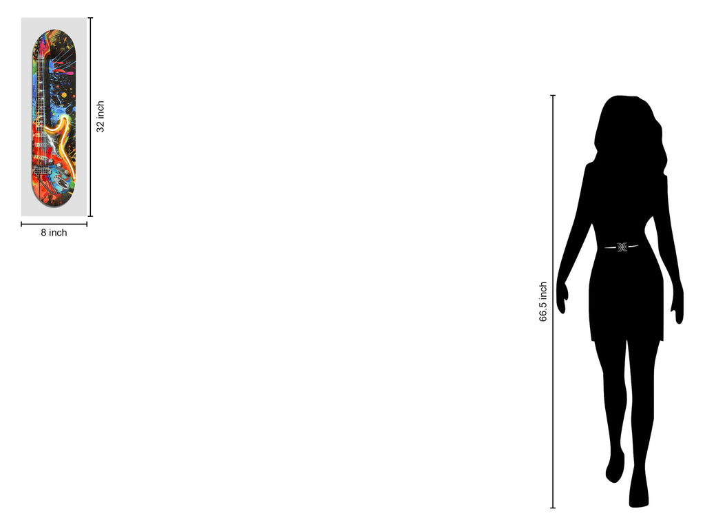 This Neon Guitar Art on Skateboard blends vibrant hand-painted details with dynamic LED neon lighting to create a striking visual centerpiece. Crafted on a wooden skateboard-shaped board, it features a colorful electric guitar design accented by glowing neon that adds energy and personality to any space. Perfect for music lovers and contemporary decor enthusiasts, this mixed media piece is hand-finished for unique texture and depth. Dual power options let you choose between plug-in or cordless battery operation, making it versatile and easy to display in your living room, game room, or entertainment space. Ready to hang with professional hardware, it brings bold artistic flair and functional illumination to your walls.