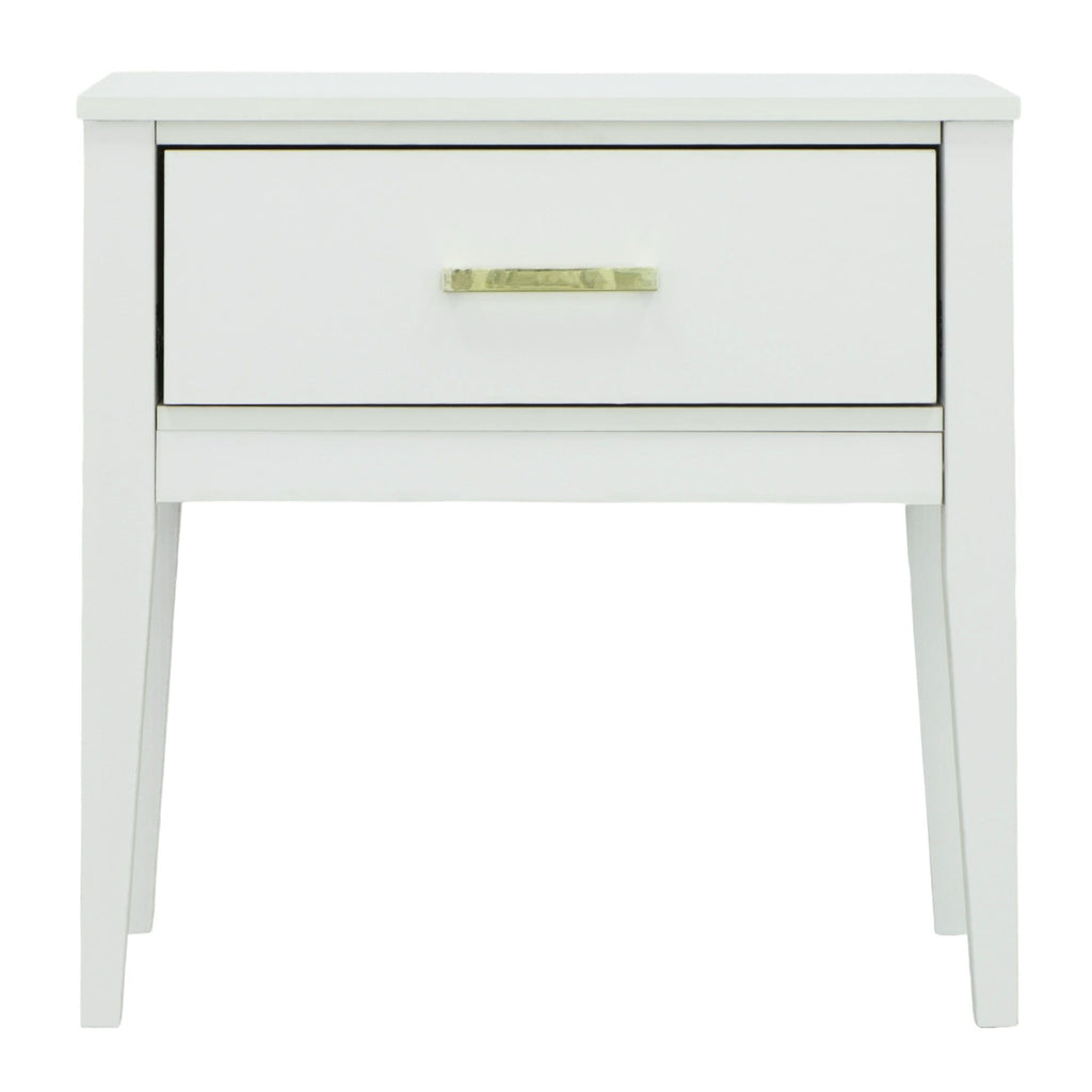 Give yourself the glamourous experience you deserve with this beautiful bedroom collection. The show-stopping set includes a beautifully upholstered grey fabric that covers the headboard, footboard, and side rail. A 12-slat hook system is anchored by golden legs that add a touch of modern beauty, while the tall, three-panel headboard adds just the right amount of drama to elevate any bedroom. Once paired with the two white-finish nightstands, you will have a luxurious environment that will have you feeling majestic each time you drift off to rest.