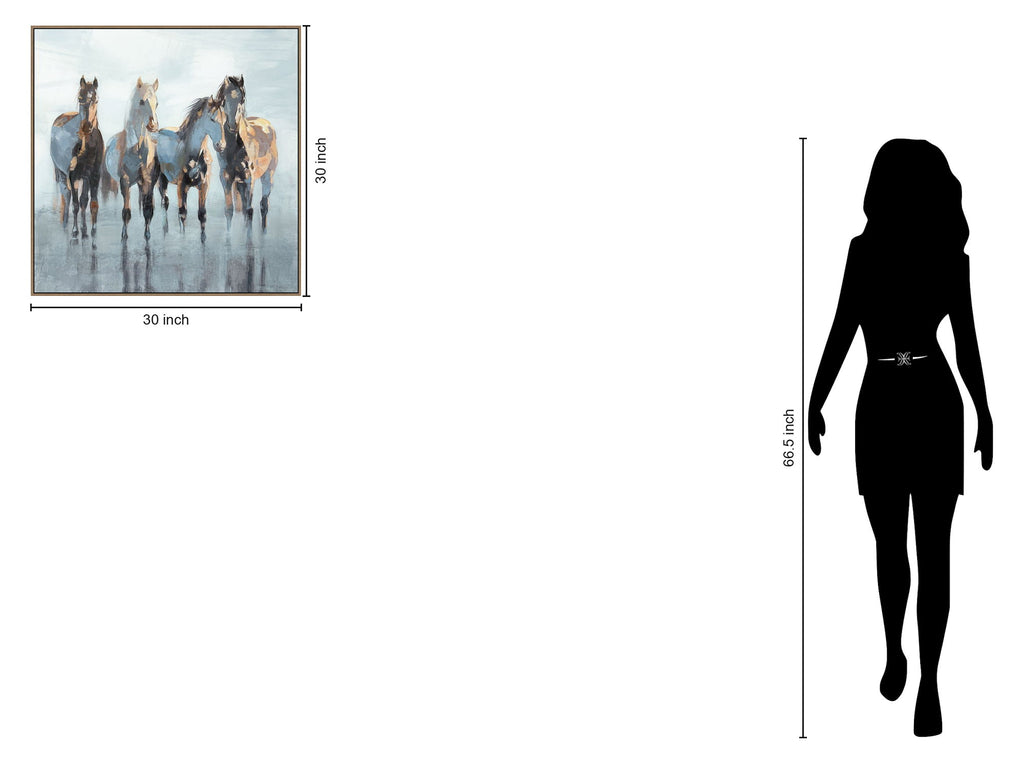 Capture the majestic beauty of horses with this stunning hand-painted acrylic piece. The artwork features a group of horses in motion, exuding strength and grace, perfect for adding a touch of elegance to any room. Its vertical orientation and framed finish make it a captivating centerpiece.