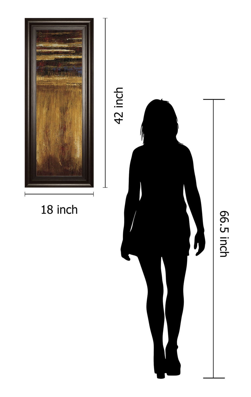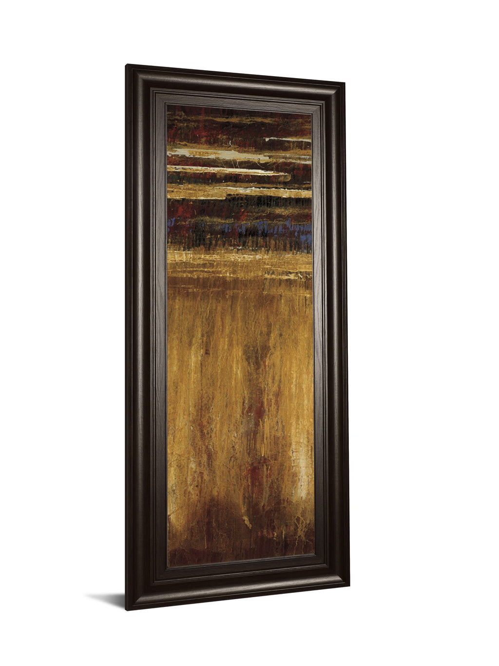Step into a world of rich textures and warm hues with this captivating piece, where golden tones blend seamlessly with deep reds, blues, and earthy browns. The layered abstract design invites contemplation, evoking a sense of depth and mystery that transforms any room into a sophisticated retreat. Encased in a wide, dark chocolate frame with crystal-clear glass, this artwork not only enhances your space with its elegant presence but also offers lasting protection and vibrancy. Perfectly sized at 42 by 18 inches, it is ready to hang and ideal for living rooms or offices seeking a refined touch of modern artistry.