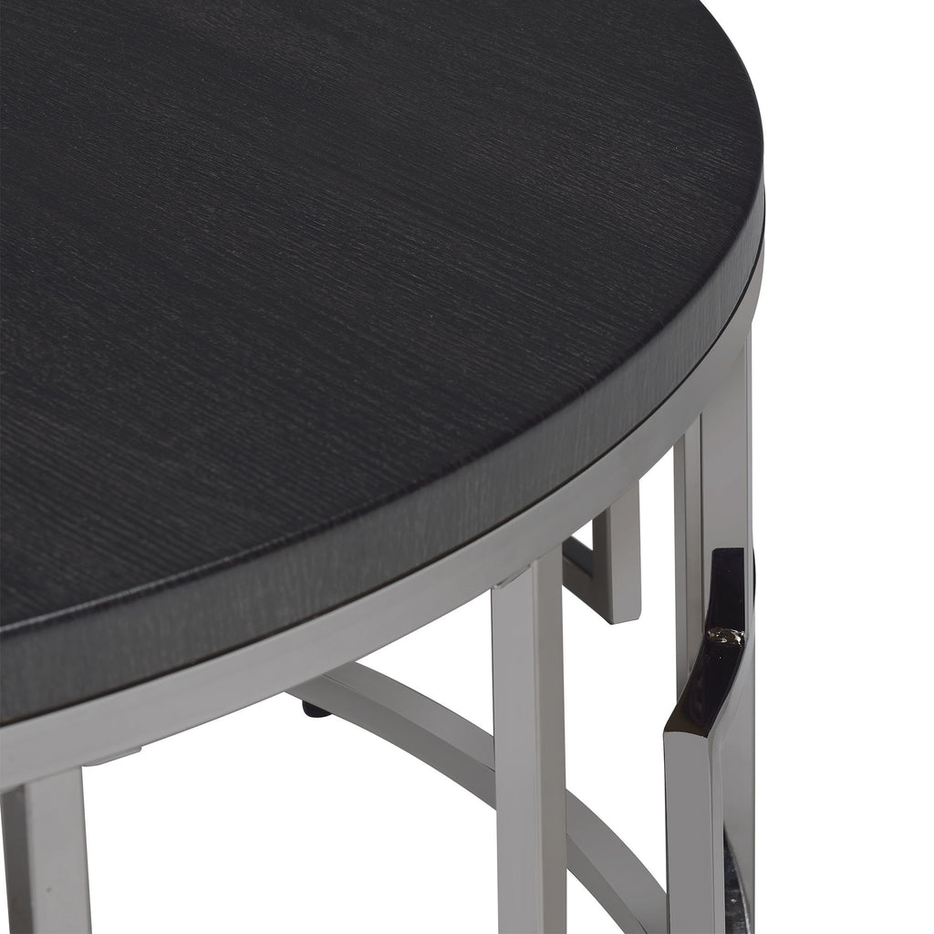 An occasional piece ideal for adding dark, sophisticated tones to your living space. The Ester End table is constructed of a black wooden tabletop and metal nickel base, which features clean lines and cutouts that can be appreciated from any angle of the room. Round table design can be ideal for small space living, but this standout piece can seamlessly transition into any place and keep it stylish year after year.