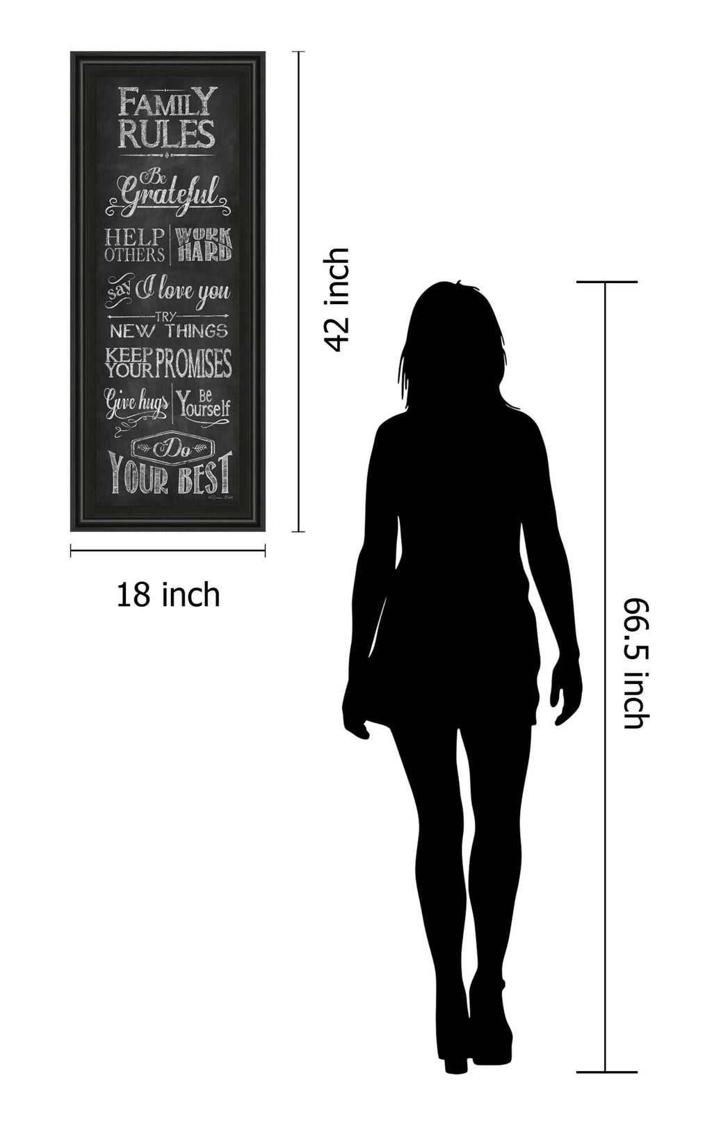 Infuse your space with warmth and inspiration through this beautifully framed "Family Rules" wall art. Featuring a charming chalkboard style design, this piece highlights timeless family values like gratitude, kindness, and love in elegant white typography against a deep black background. Its sturdy MDF frame in a sophisticated midnight aura finish complements any living room, kitchen, or office, making it a meaningful addition that encourages positivity and connection every day. Crafted with premium materials and ready to hang, this artwork serves as a daily reminder to cherish and uplift those closest to you.