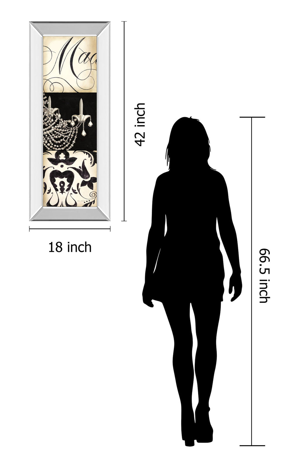 This elegant framed wall art piece captures a sophisticated blend of classic script and ornate crystal details set against a chic black and cream backdrop. The elongated vertical design is enhanced by a sleek mirrored frame that reflects light and adds a touch of luxury to any space. Ideal for living rooms or offices, this artwork offers a refined focal point that combines timeless glamour with contemporary style, protected by real glass and ready to elevate your décor effortlessly.