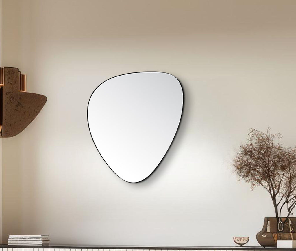 Restyle your walls with the Finch Mirror, a striking piece featuring a finish and a unique pebble-shaped iron metal frame. This mirror's contemporary design marries sleek modernity with organic forms, creating a captivating focal point in any room. Whether hung in your entryway, living room, or bedroom, this mirror adds a touch of sophistication and artistic flair, effortlessly enhancing your space with its distinctive shape and refined finish.