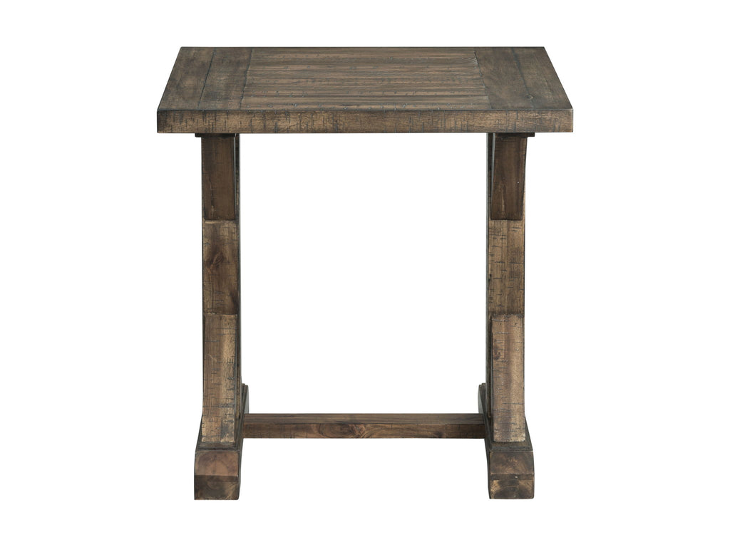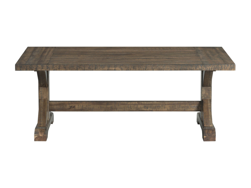 The Finn Table is the perfect piece to update your living room! This rectangle table will add the right amount of rustic charm to your home. The accent table features trestle legs, adding an extra level of design to this already stylish set. This handsome table is finished in a dark, walnut finish with distressed markings throughout. Give your living room the perfect amount of rustic charm with the Finn Table.