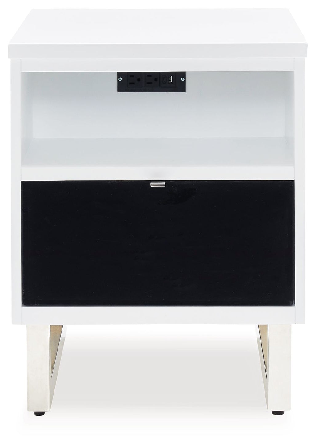 Combining a high-gloss white finish with a black drawer front, this chairside end table proves opposites really do attract. It's the perfect blend of modern style and functionality, with plenty of space for essentials and convenient USB charging. What a smart choice on so many levels.