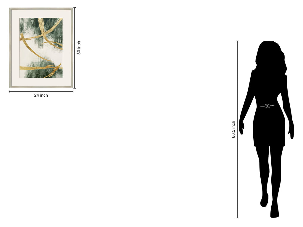 Experience the captivating allure of 'Golden Strokes,' where sweeping gold lines dance across a backdrop of deep green hues. This hand-embellished graphic art piece, framed under acrylic, adds a touch of modern elegance to any space. Perfect for living rooms or offices, it invites both contemplation and admiration.
