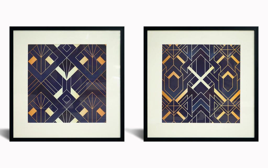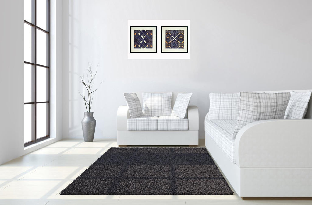 Hand Painted Textured Canvas in Frame (Set of 2) - Blue
