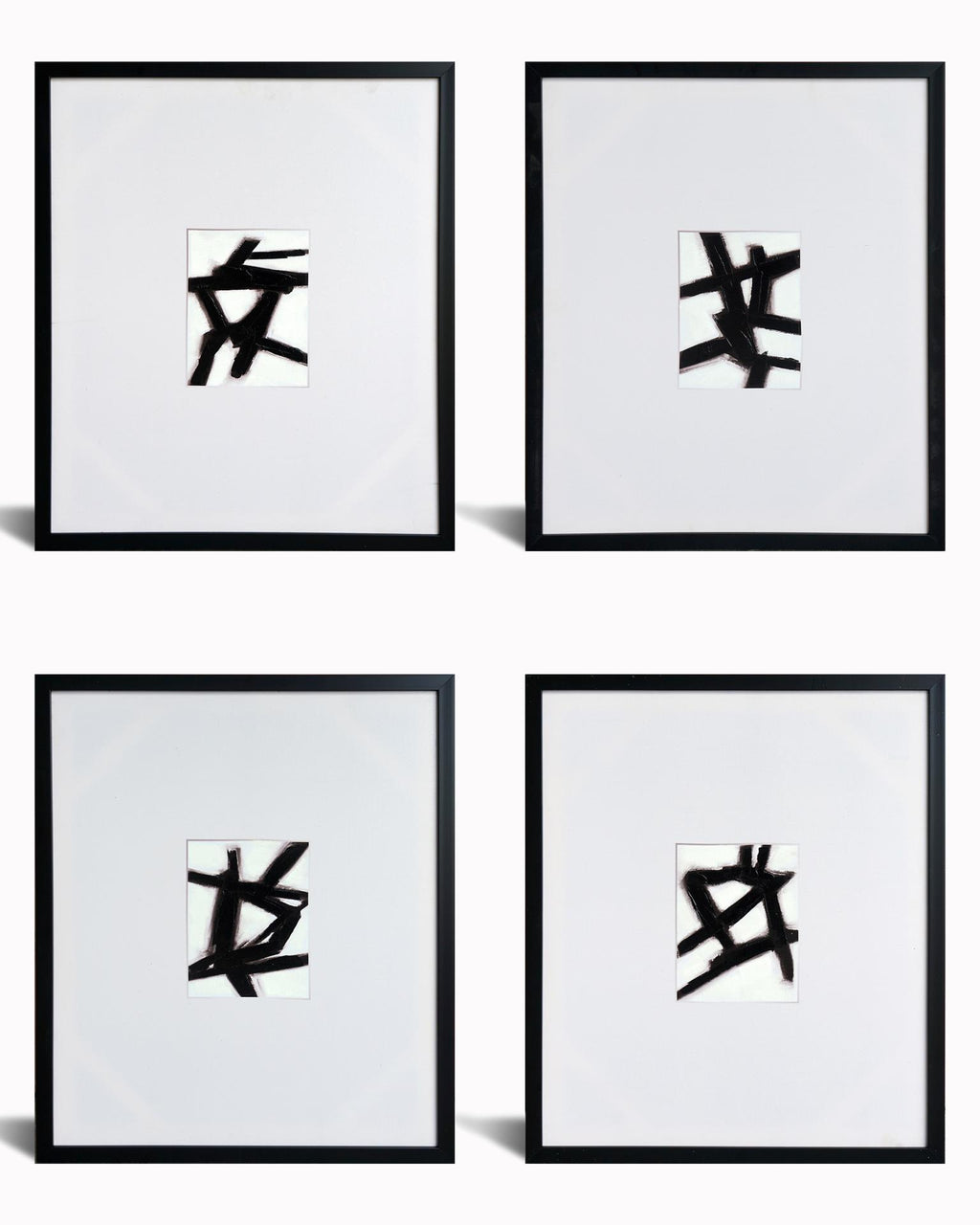 Hand Painted Textured Canvas in Frame (Set of 4) - Black